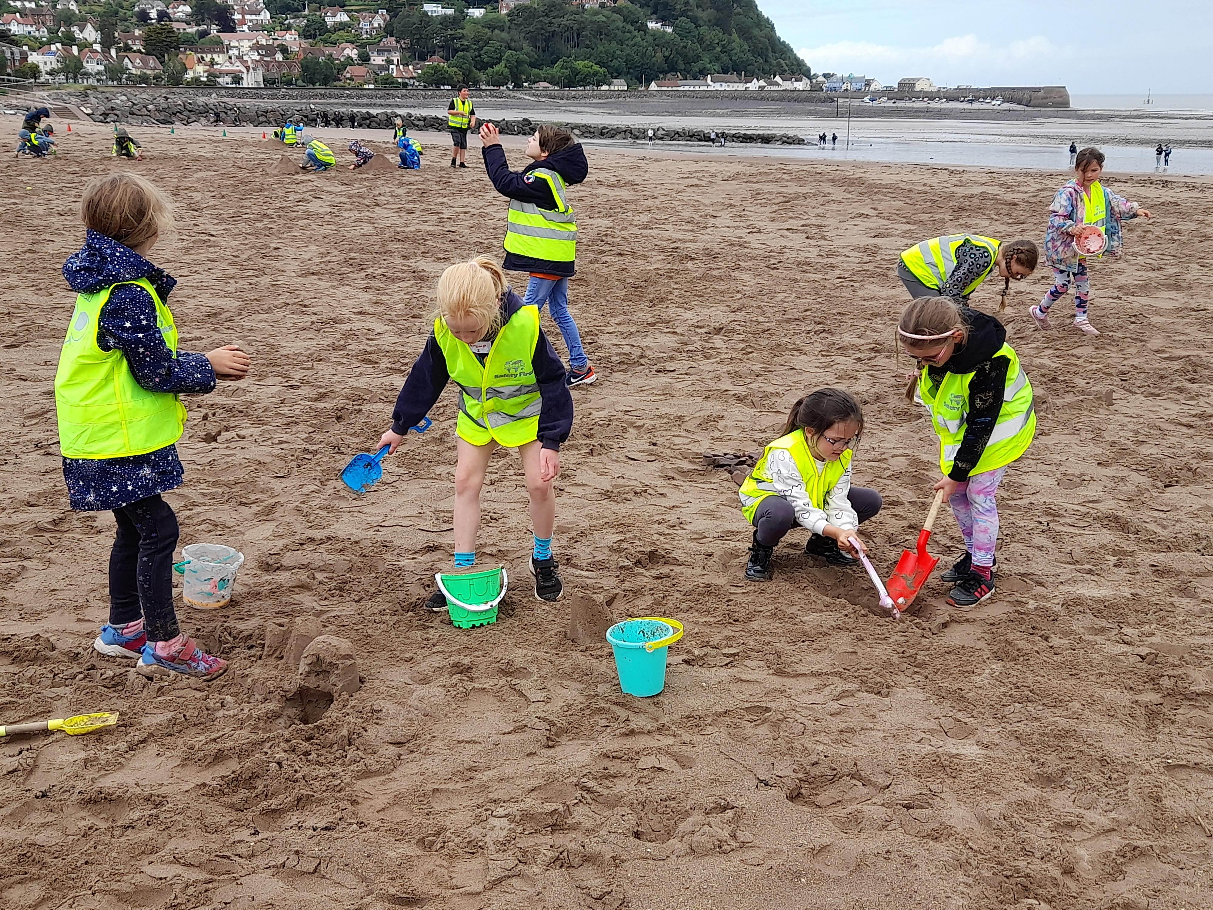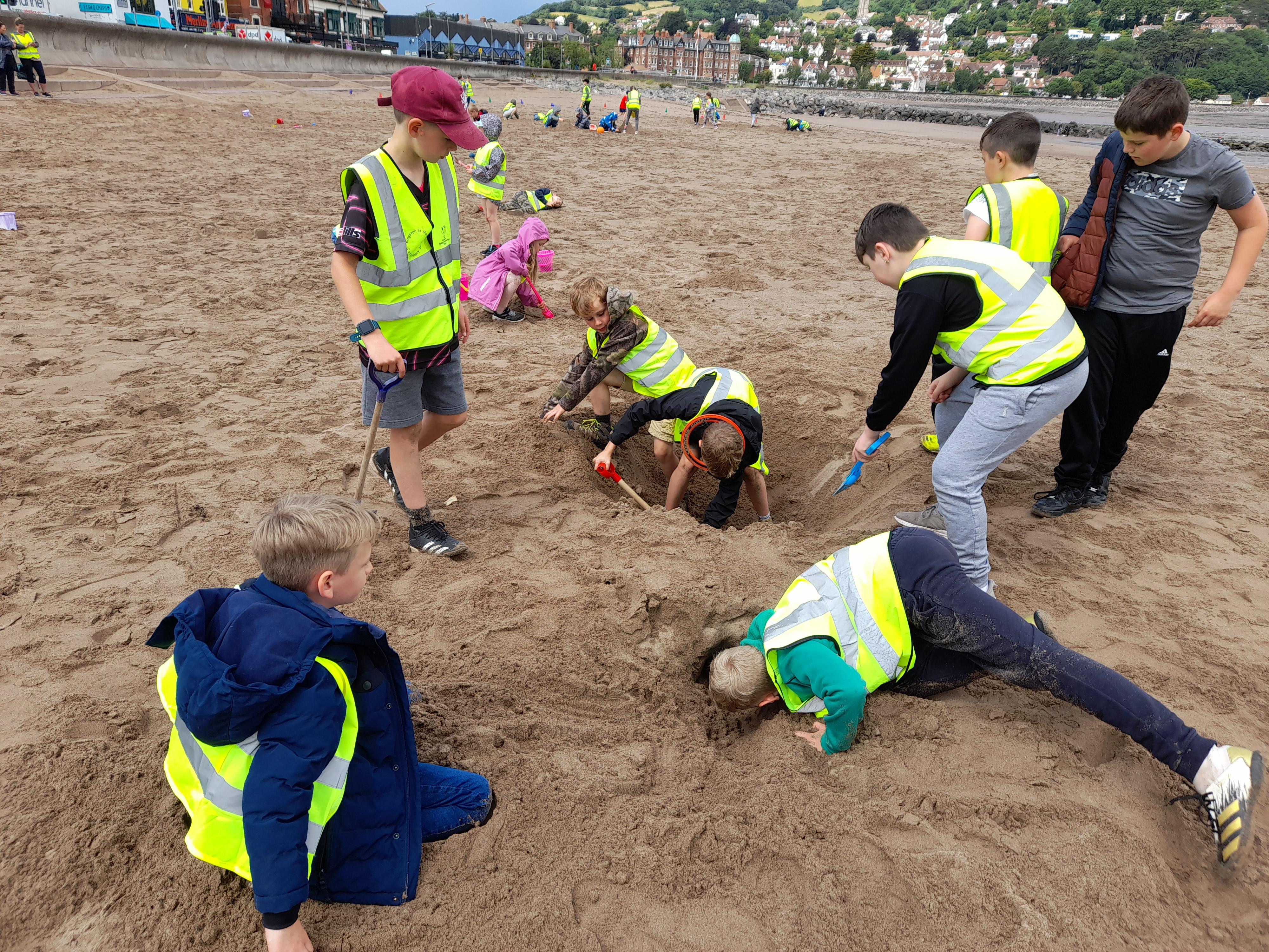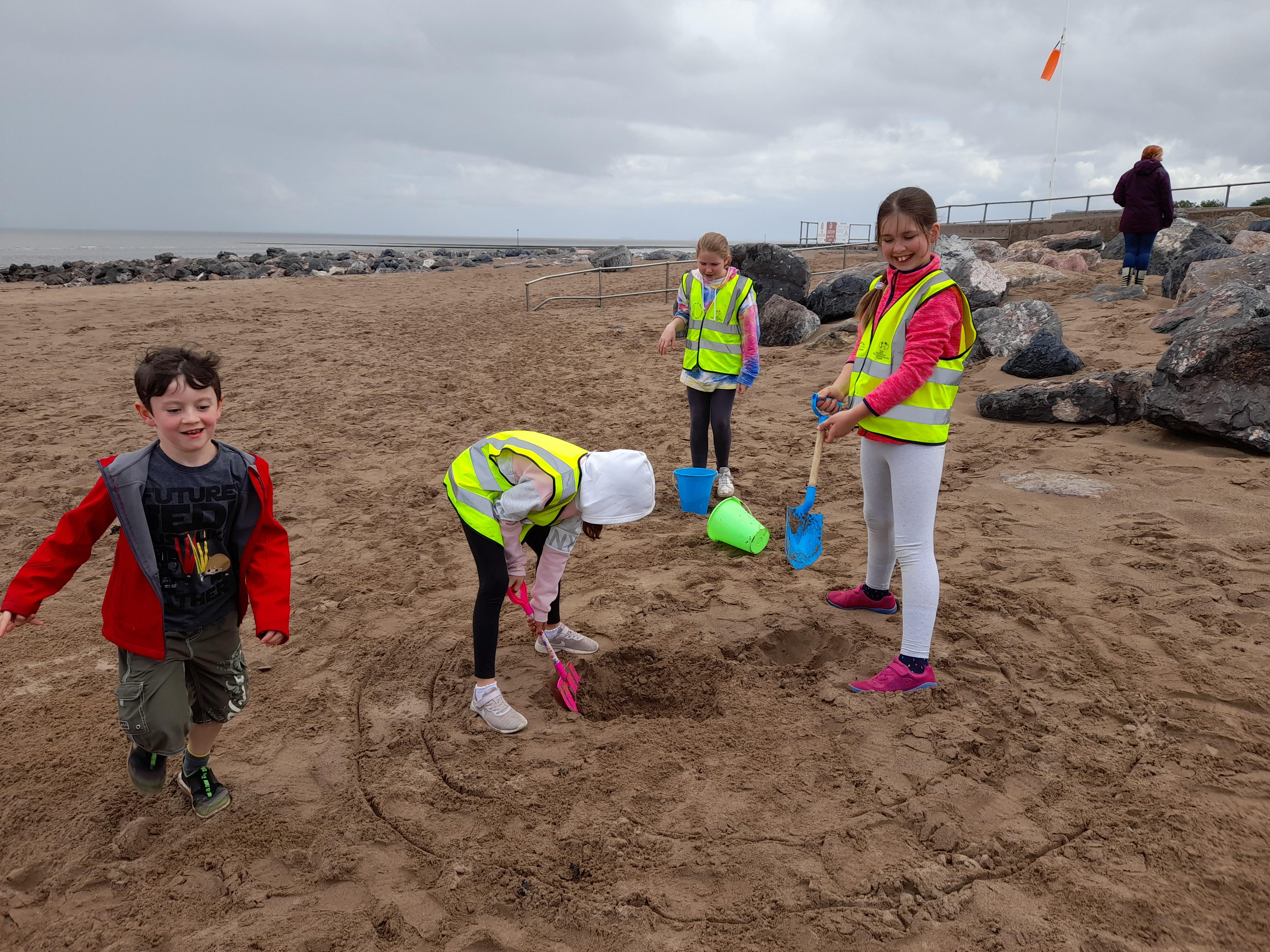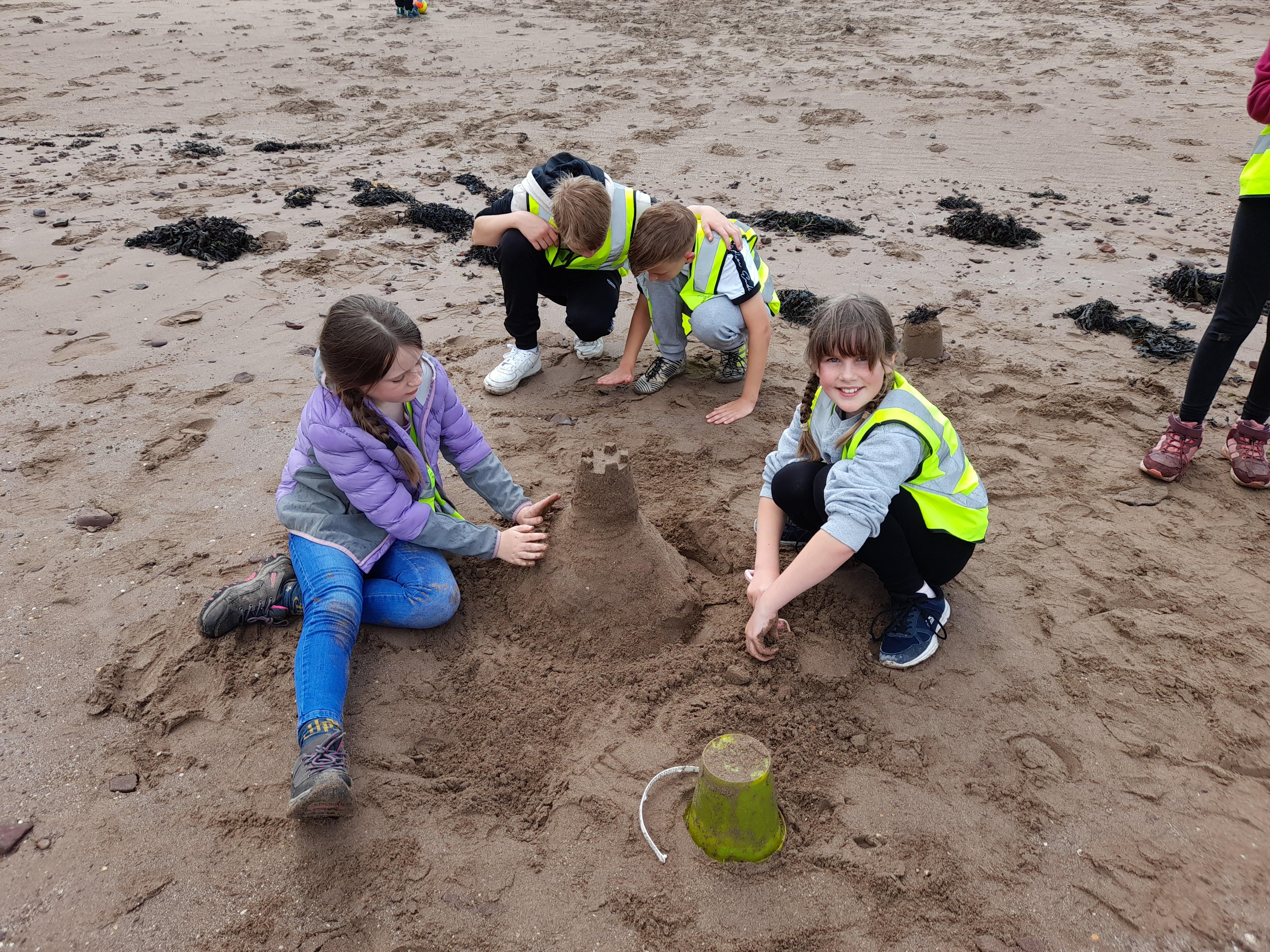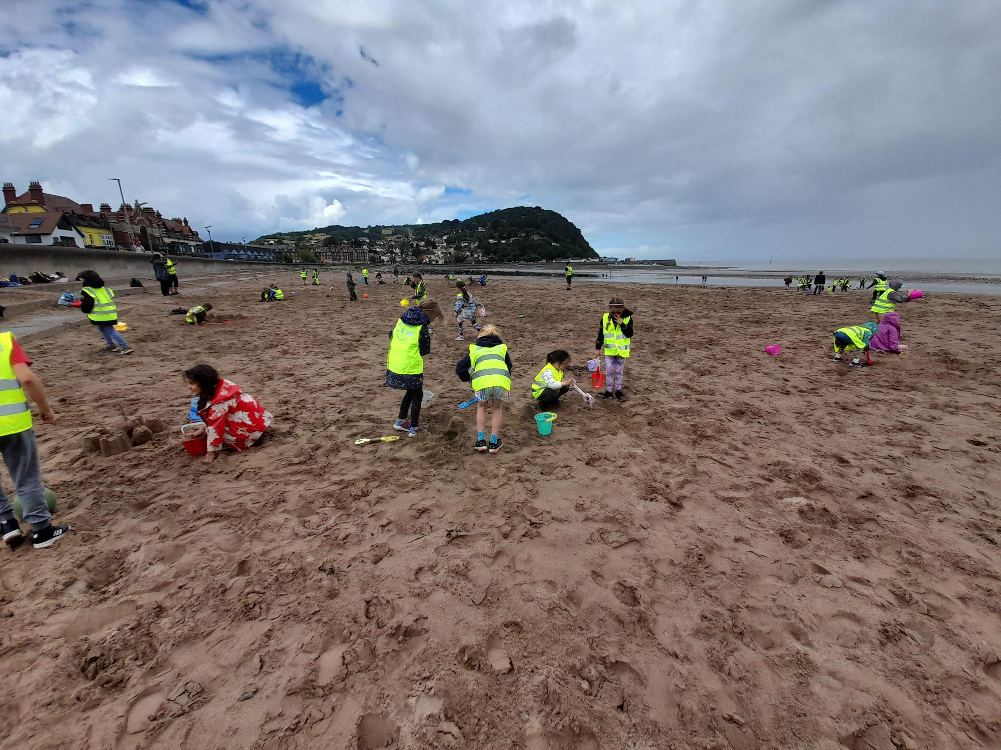 As part of Eco-week, the whole school enjoyed a day trip to the seaside. Laden with buckets, spades and raincoats, the children & adults enjoyed playing games on the beach, building castles, creating sand villages and digging moats & rivers. After a rather soggy lunchtime, we queued for ice-creams before embarking on the journey back to school. We had a fantastic day, even though it rained heavily!