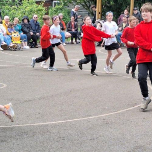 We started off by running the Golden Mile round the field to help us limber up, then the rest of the morning was spent working in our year groups taking part in a variety of multi-skill activities, which had been organised and were run by the Yr6 Sports Leaders.