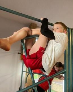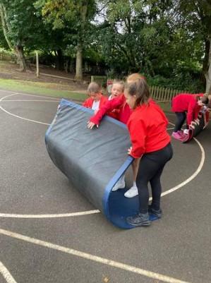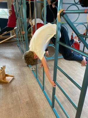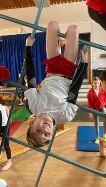 Woodpeckers PE today was playing jungle gym with the apparatus as a warm up led by three girls from the class.