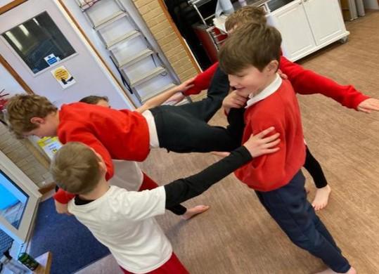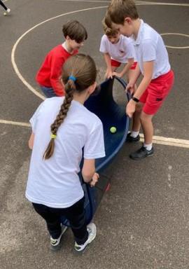Miss Storey then challenged them again to make the shapes but now on the move with the help of a partner.