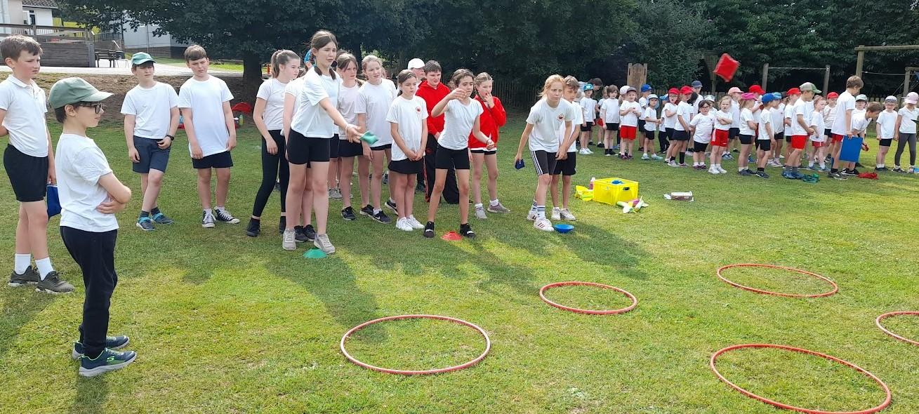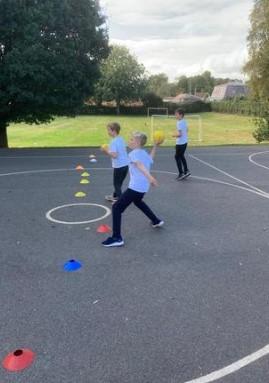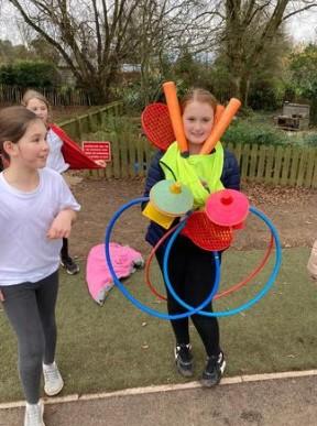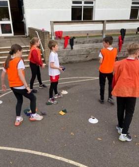 We started off by running the Golden Mile round the field to help us limber up, then the rest of the morning was spent working in our tractor group teams taking part in a variety of multi-skill activities, which had been organised  and were run by the Yr6 Sports Leaders.