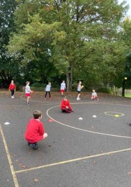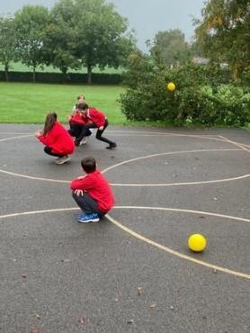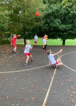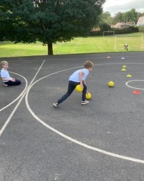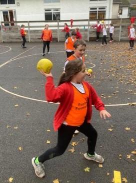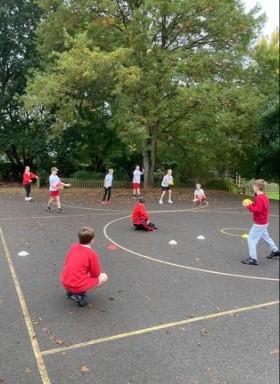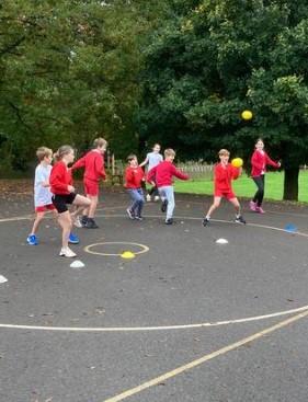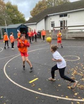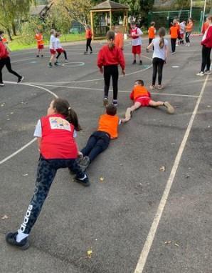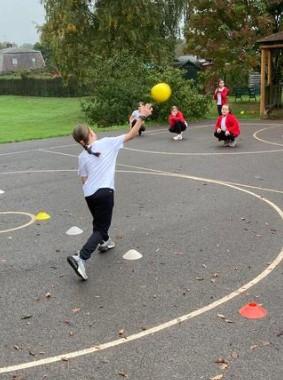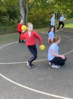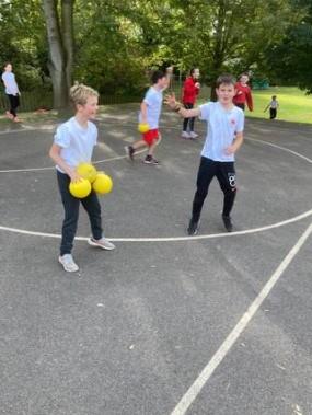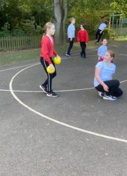 Woodies sport leaders led, refereed and explained the rules of Dodgeball to Woodpeckers before they had their Intra house competition.