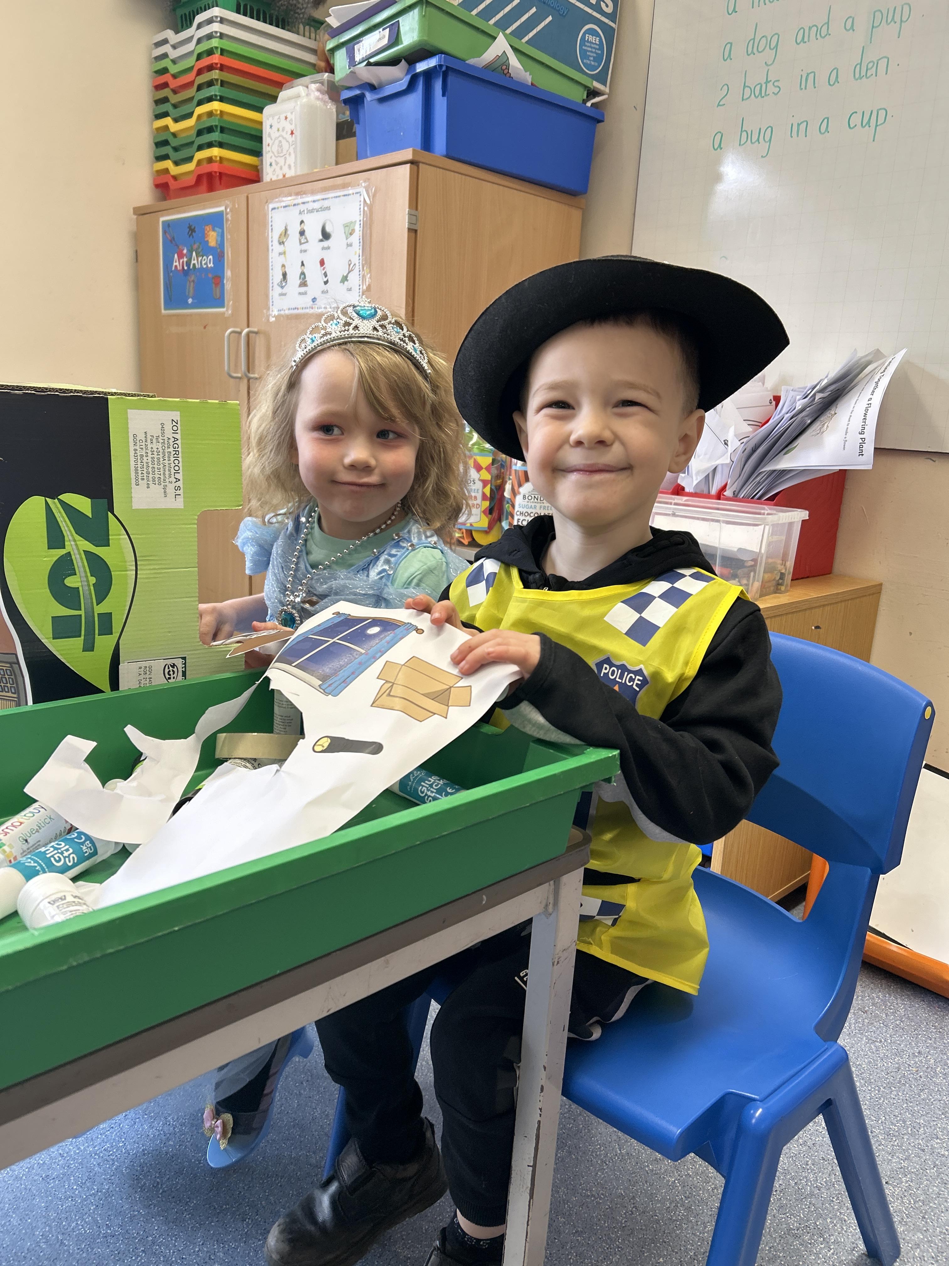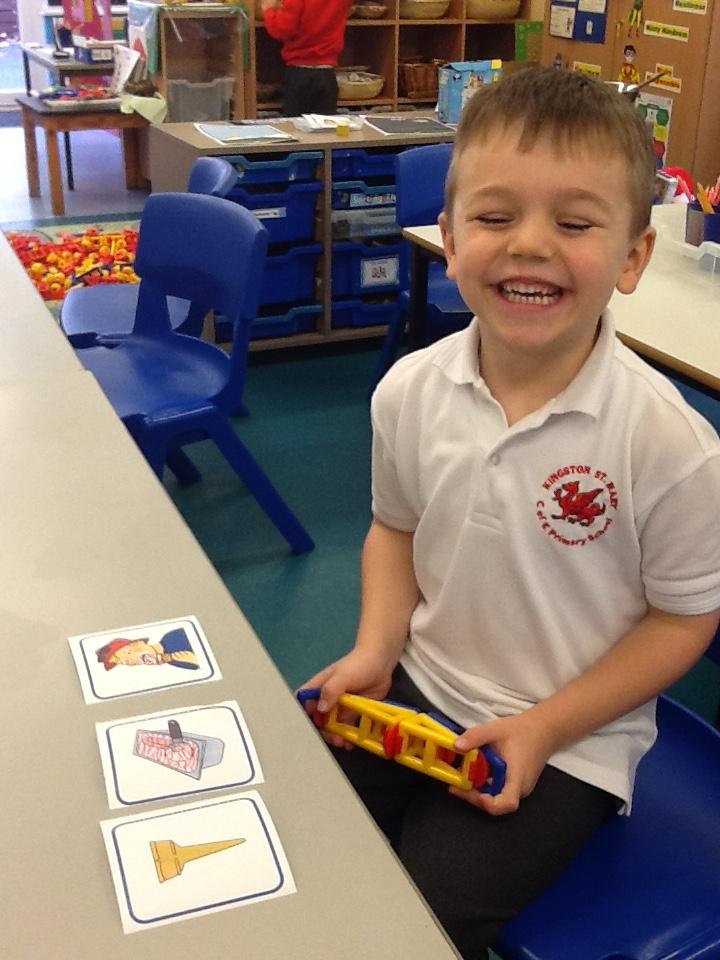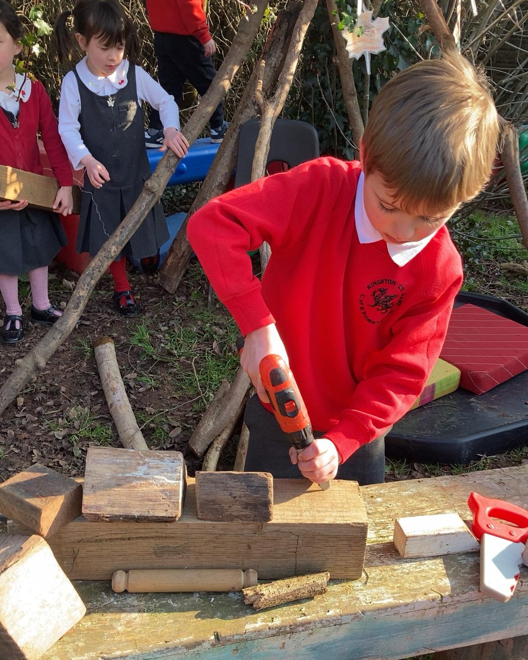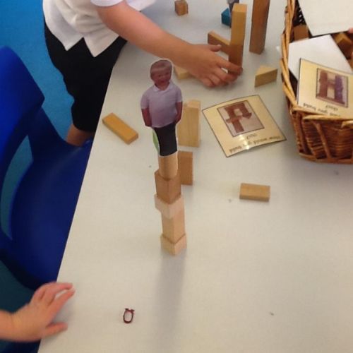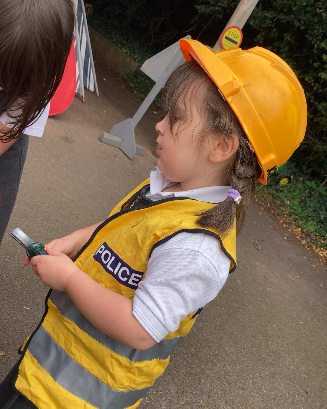 October 2022. We all love playing with boxes and today we role-played a construction site. We used the tools to build a house. We talked about health and safety and why it's important to wear a hard hat.