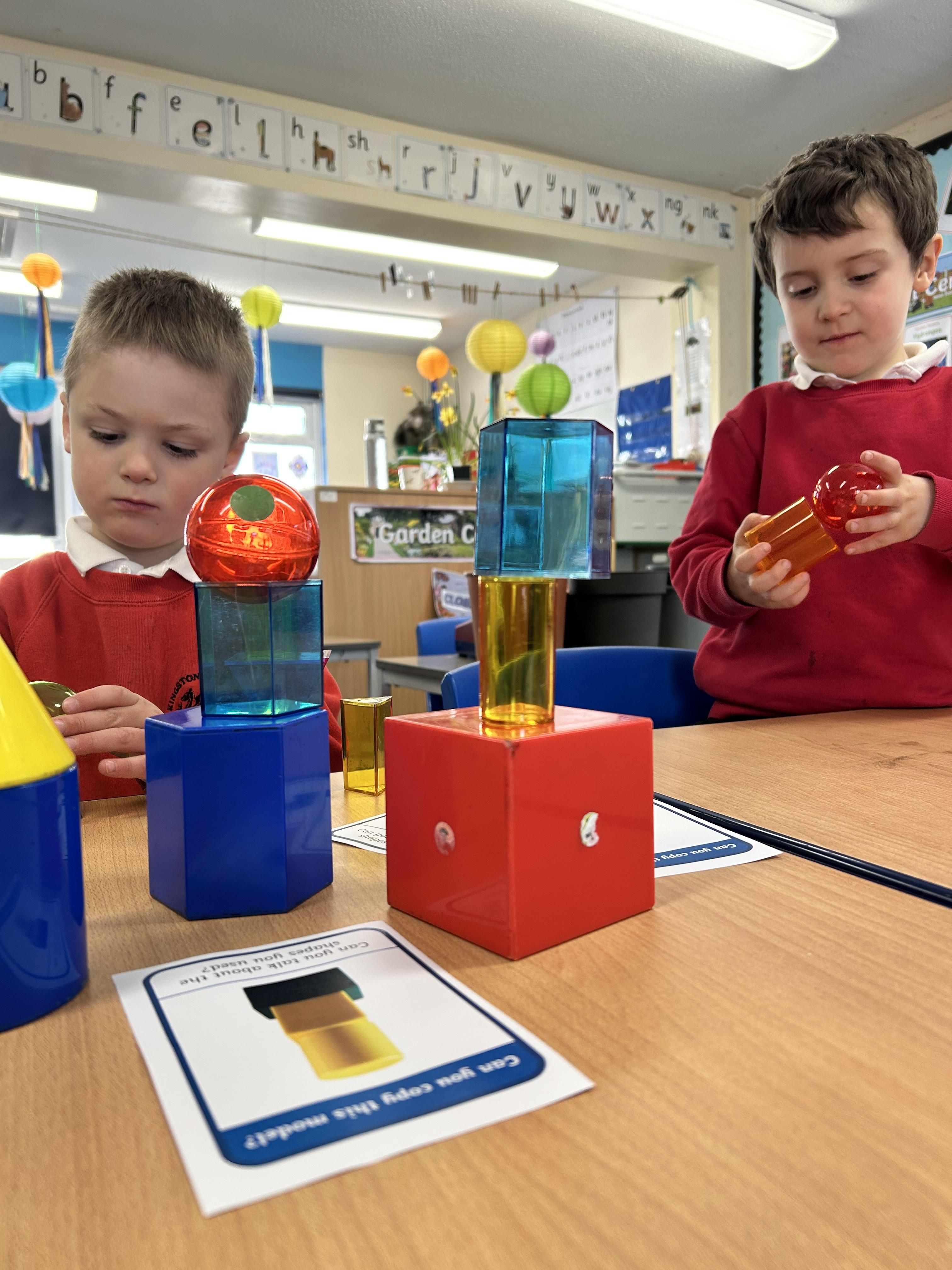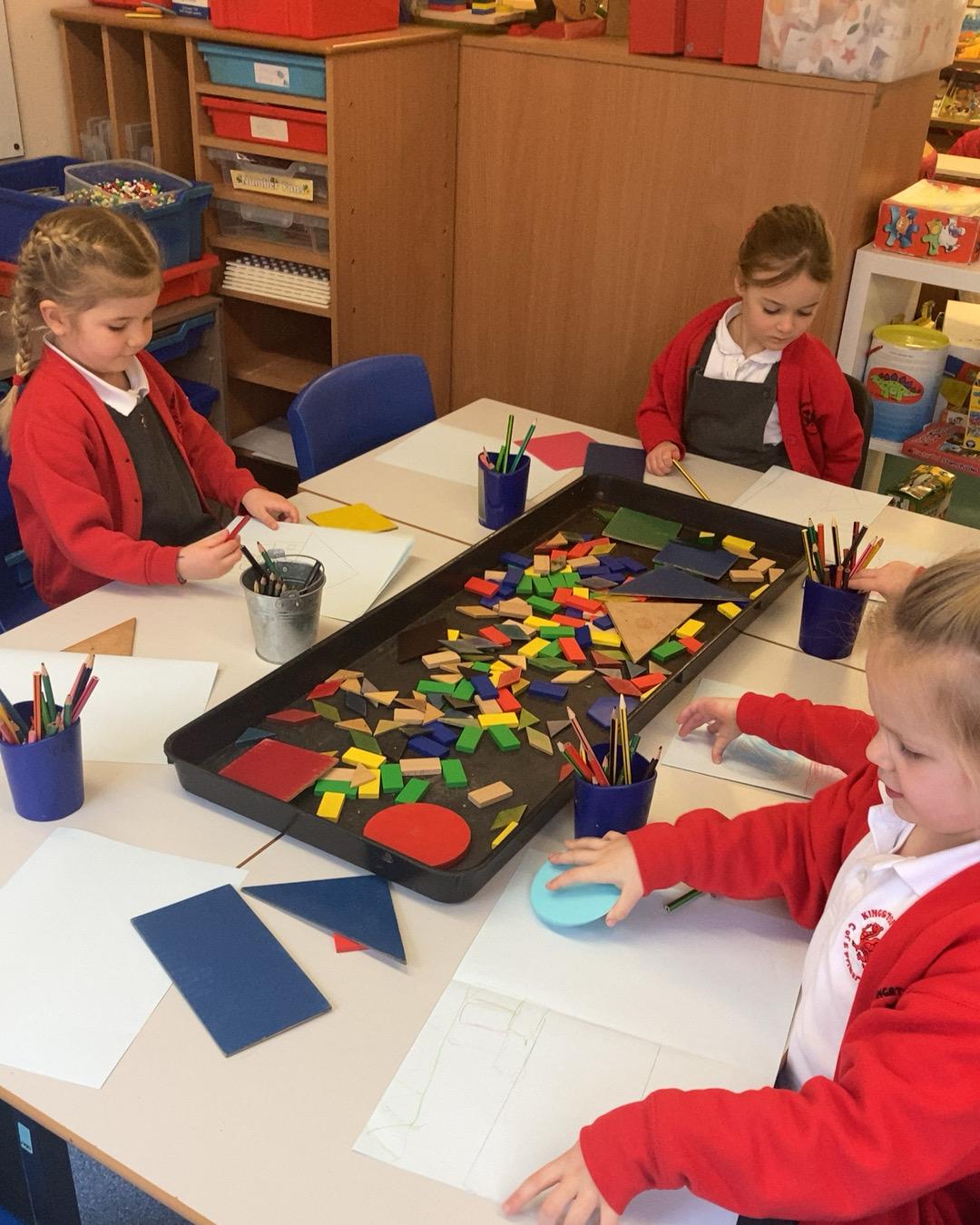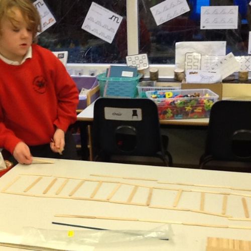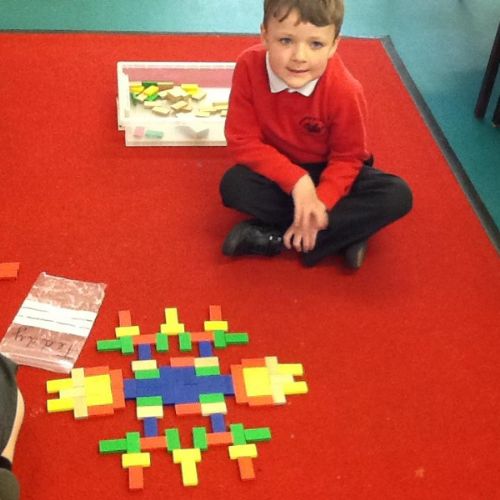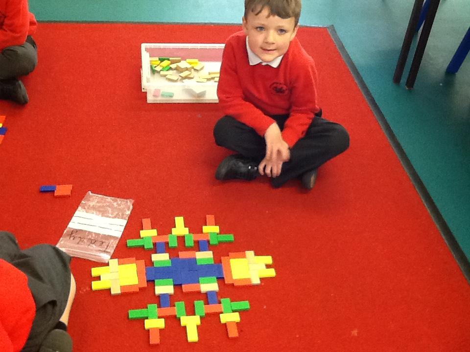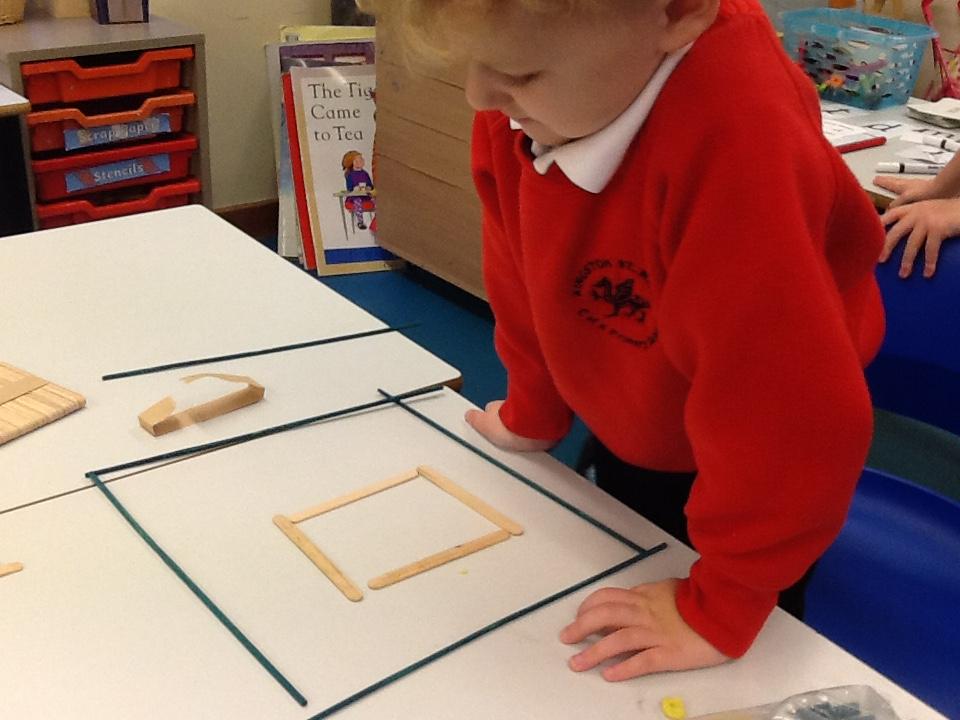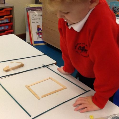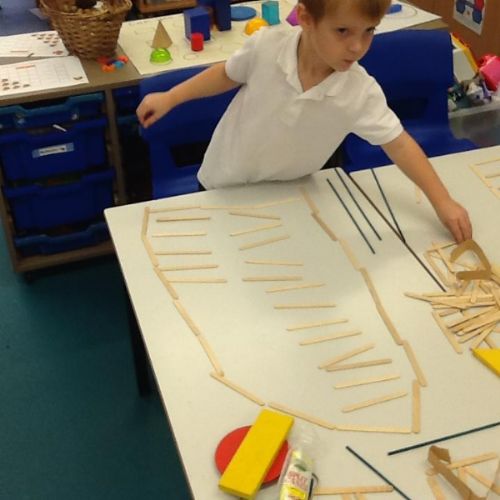 In Maths we have been looking at 4 sided shapes. The children used lolly sticks and 2D shapes to create their own pictures.