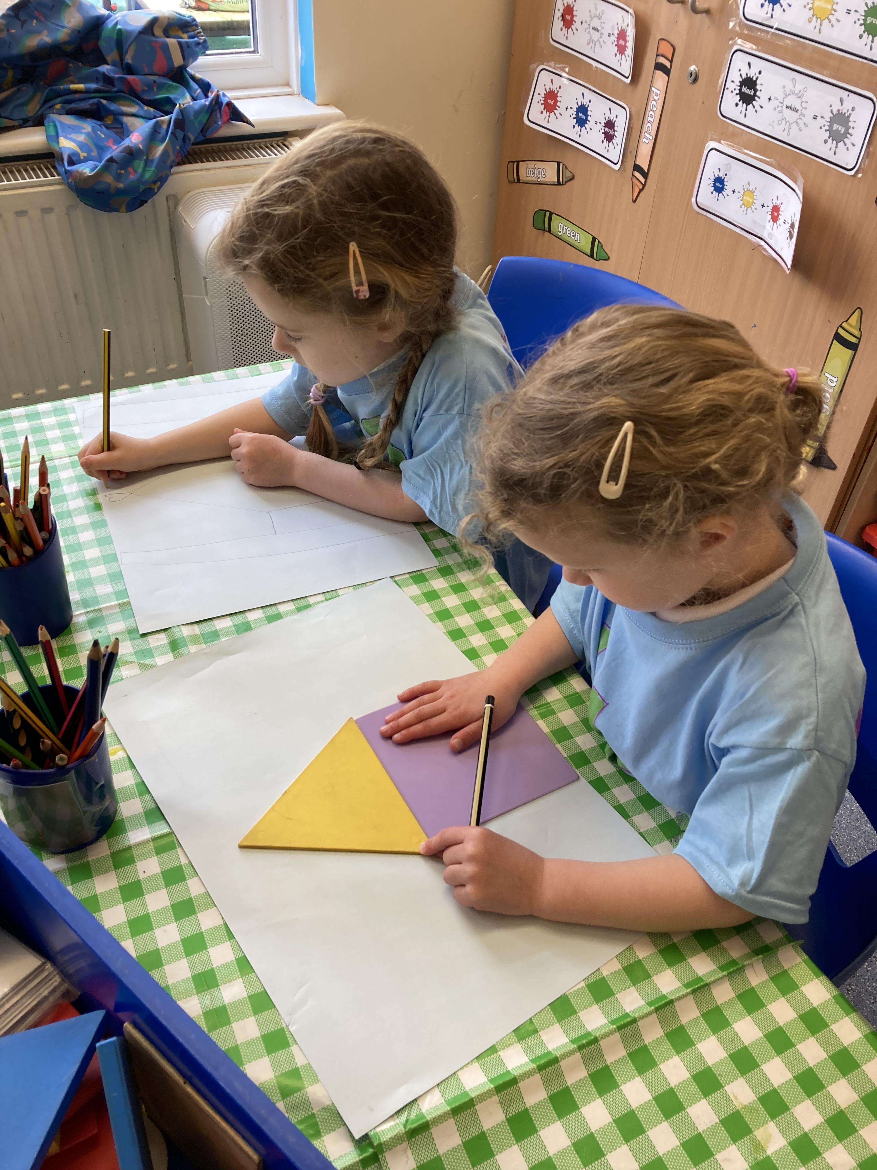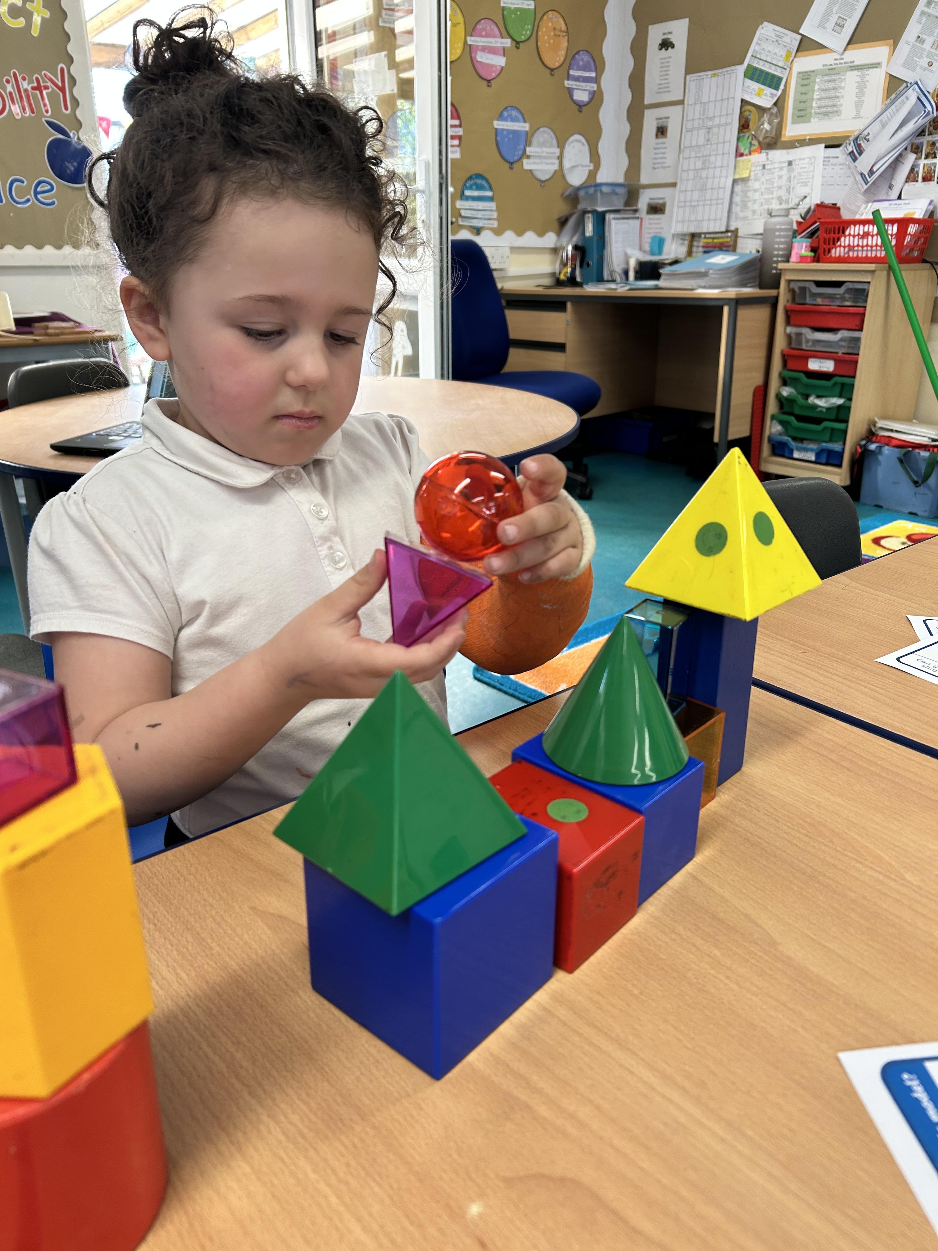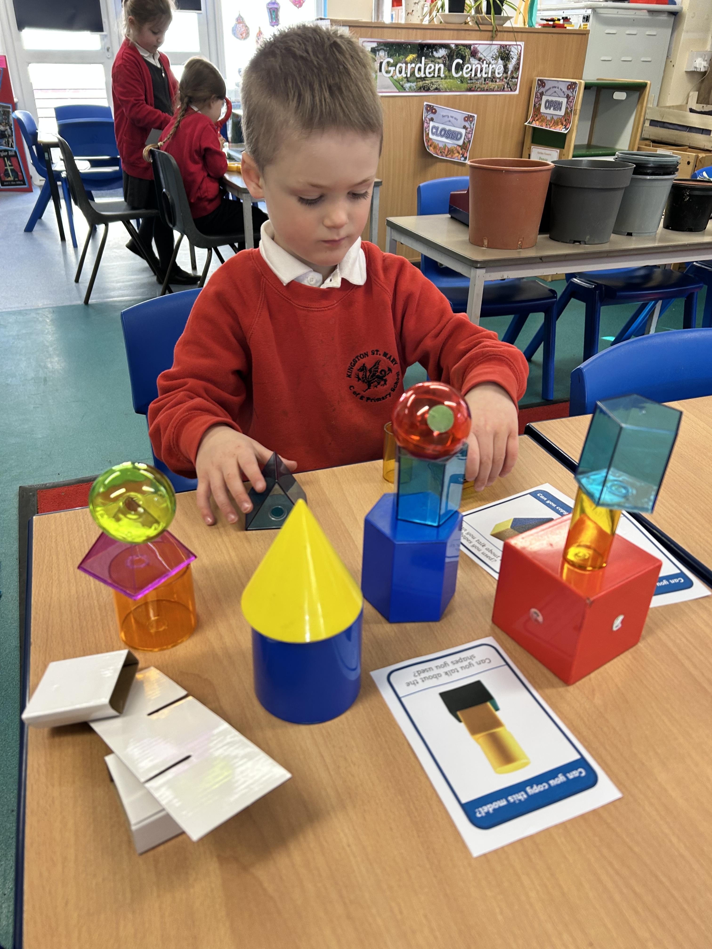 In Maths we have been looking at 4 sided shapes. The children used lolly sticks and 2D shapes to create their own pictures.