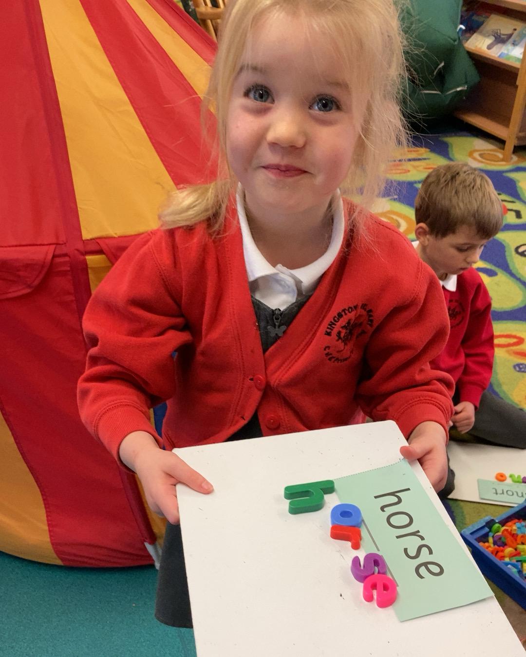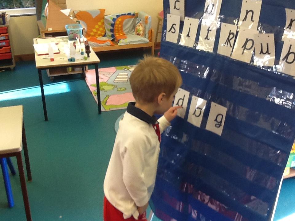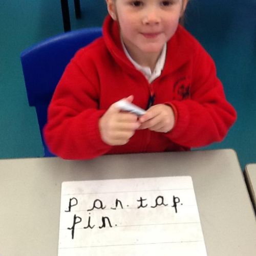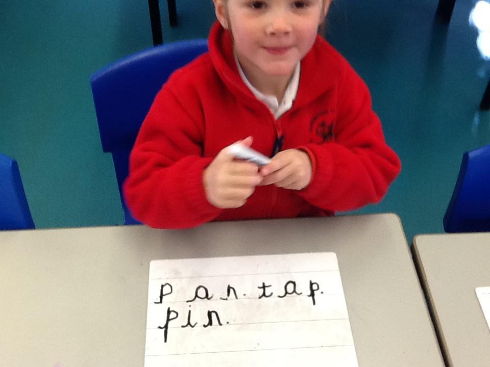 This week the children have learnt to read and write the p and g sounds (phonemes). They are getting very good at writing the sounds using the pre-cursive strokes and naming objects beginning with those sounds. The children are becoming much more confident at hearing the sounds within words and today they tried to write some simple CVC words (cat, mat, pig).