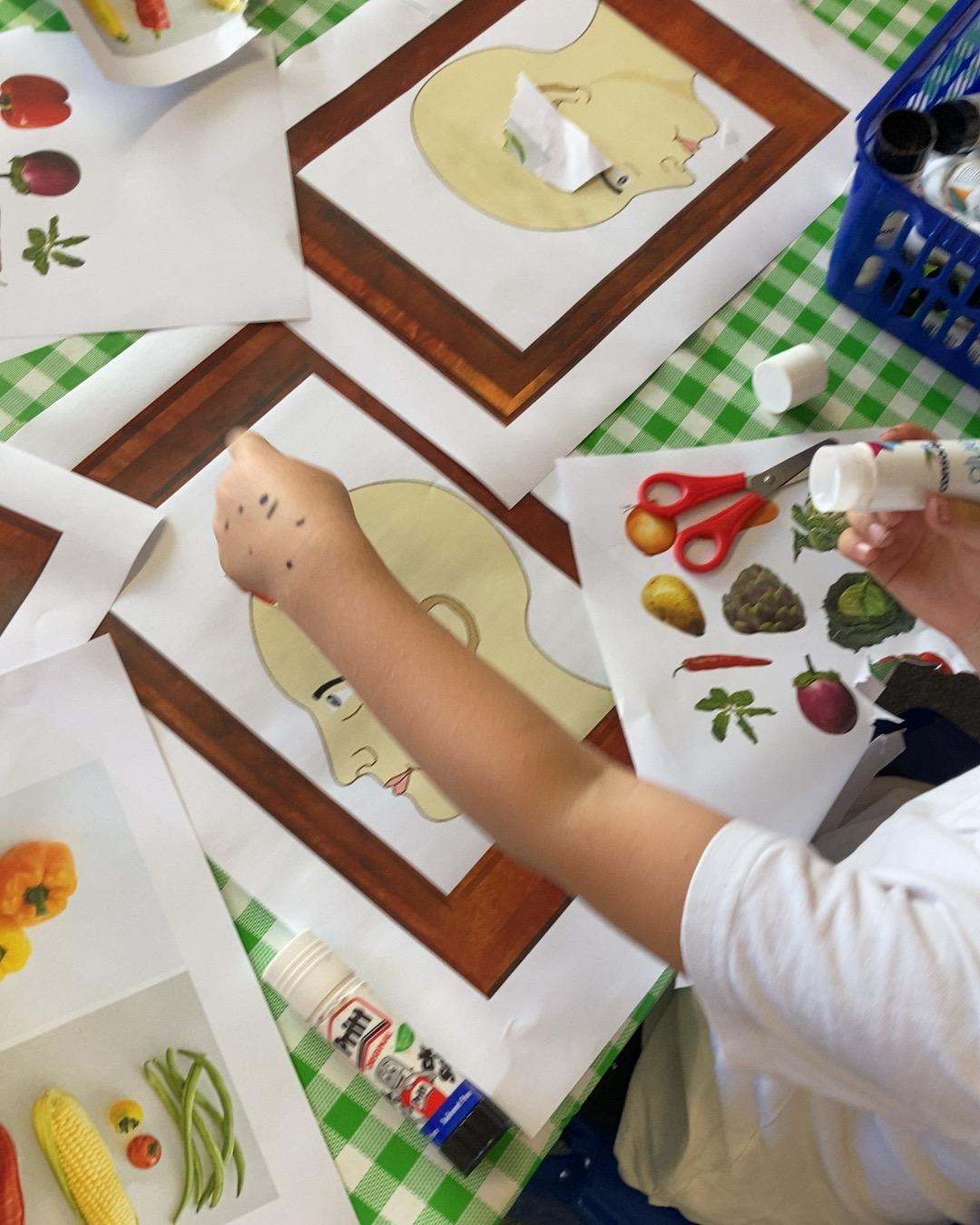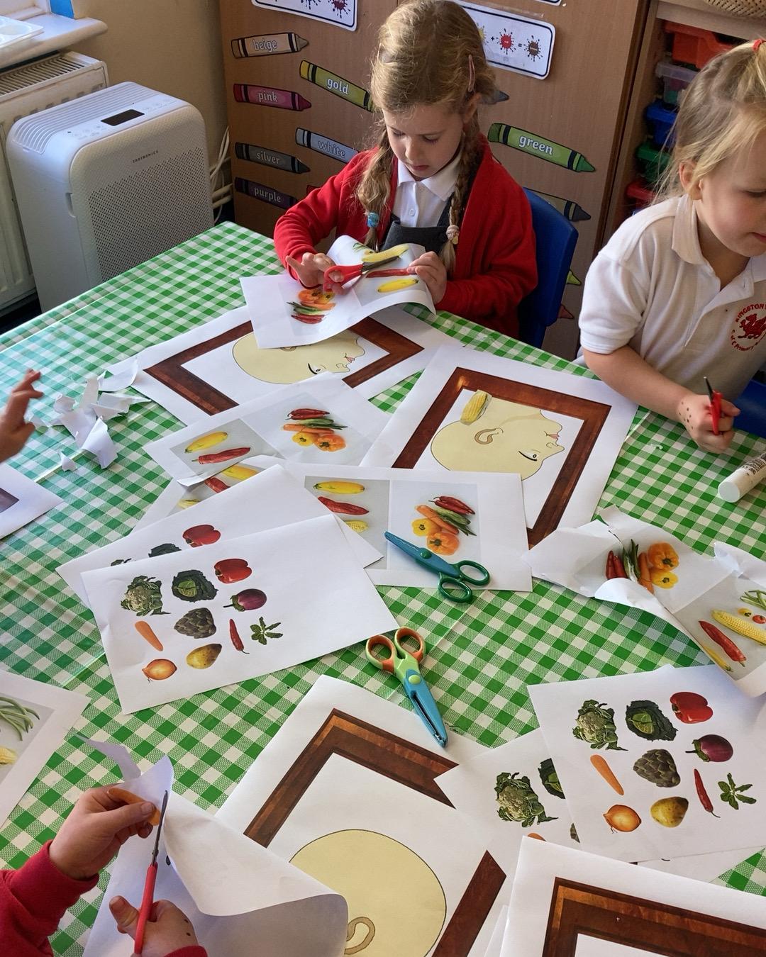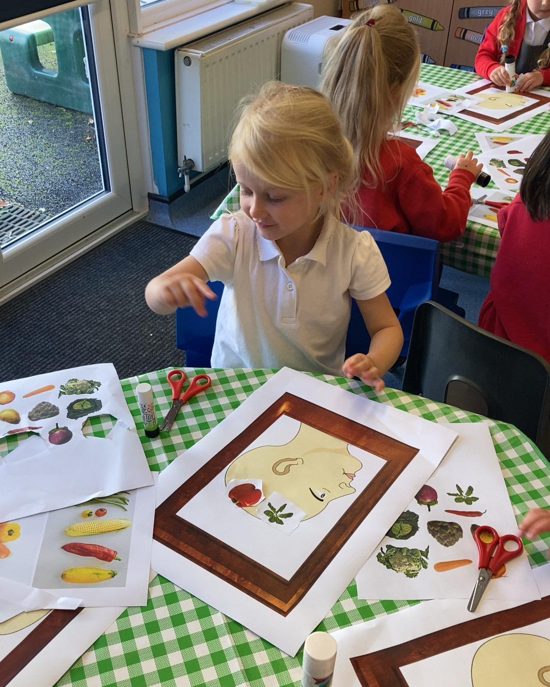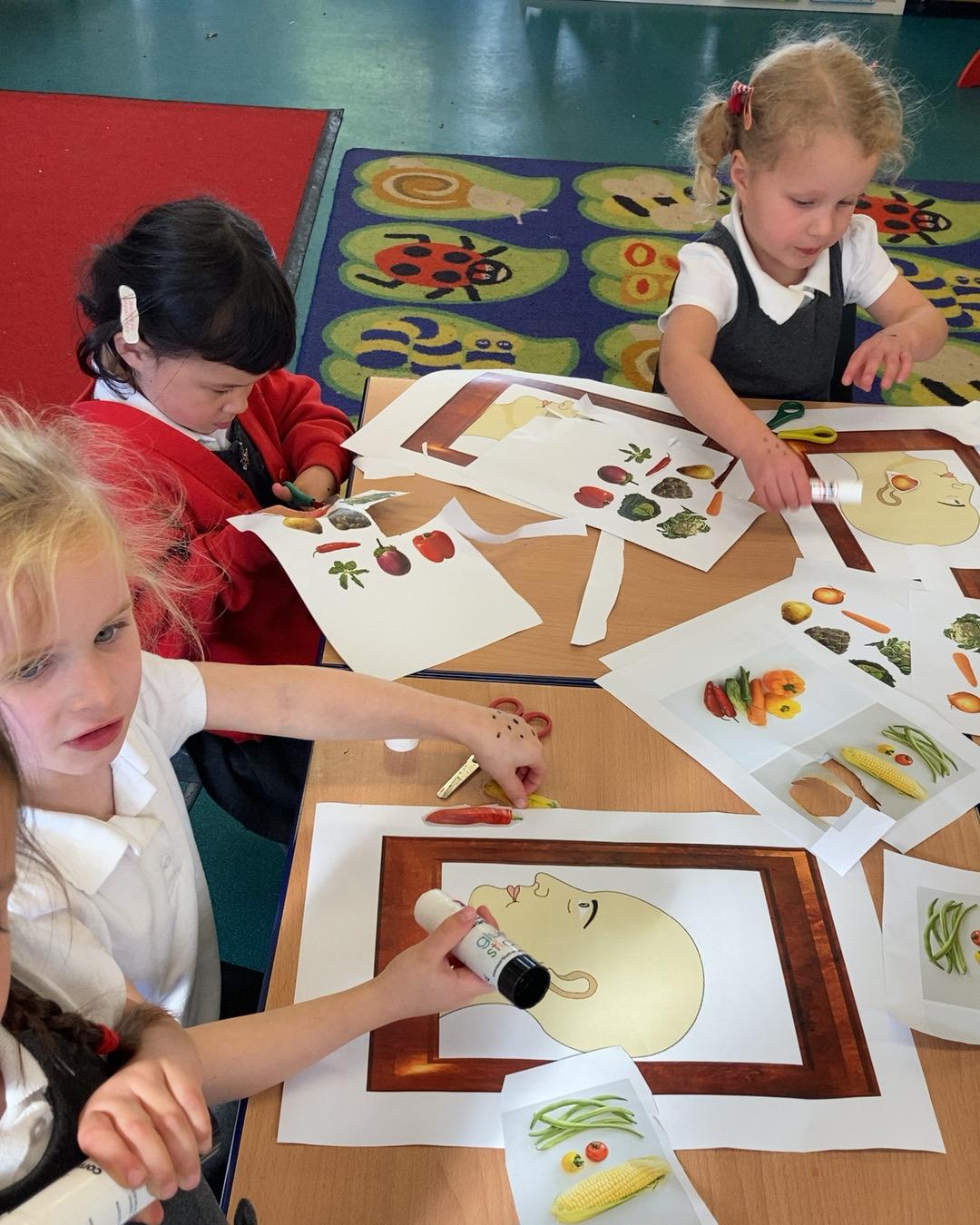 October 2022. We have been learning about Harvest time and have been looking at the artist 'Giuseppe Arcimboldo'. Giuseppe Arcimboldo painted pictures of different fruits, vegetables, meat and fish together to make portraits of people. We had a go at creating our own.