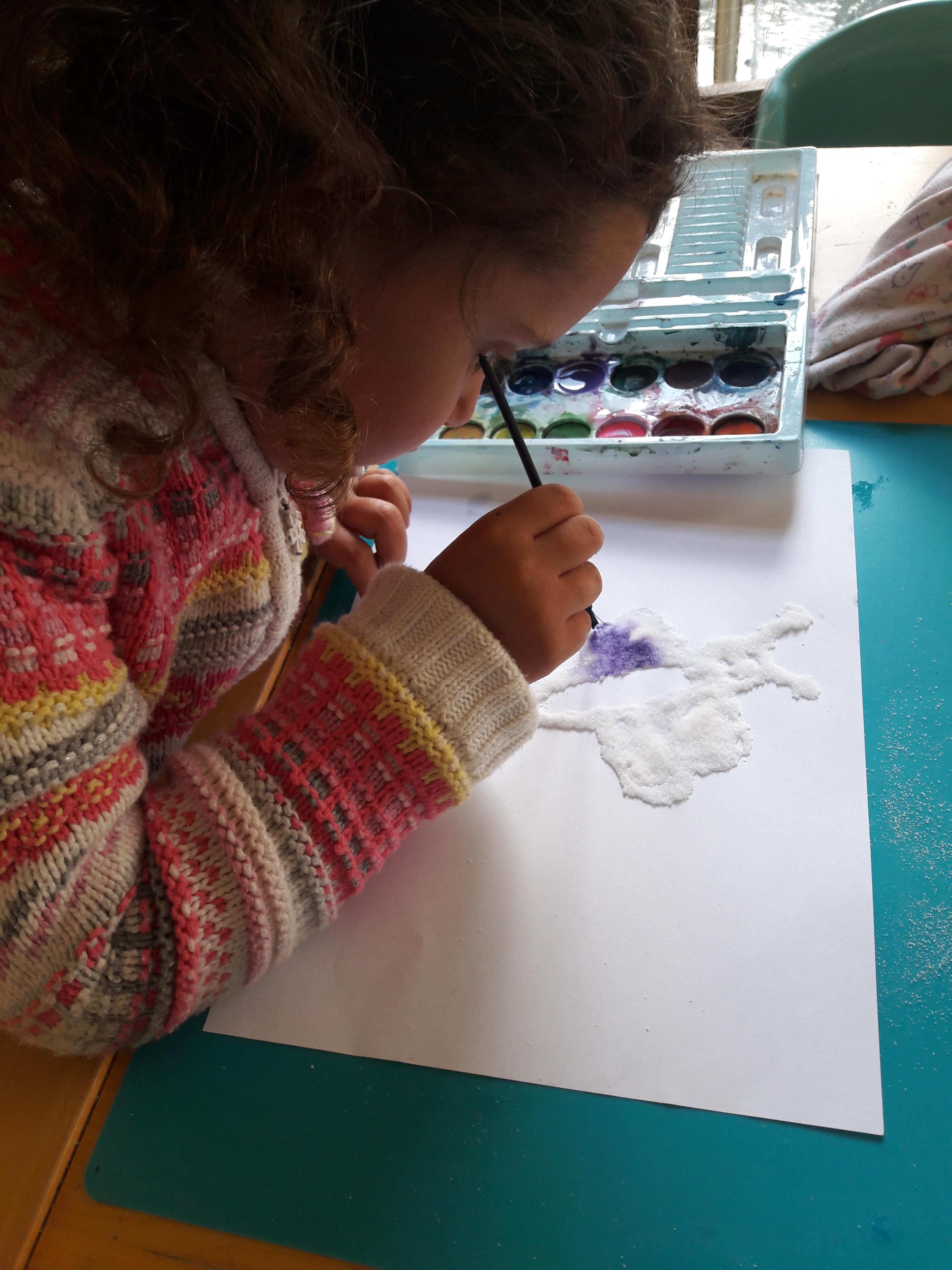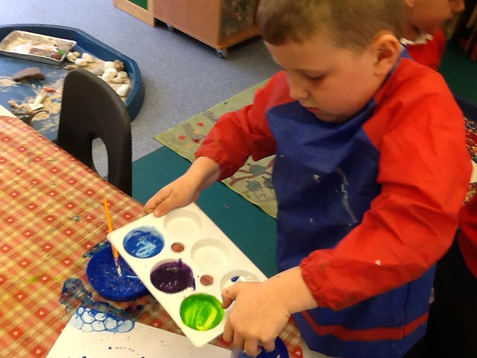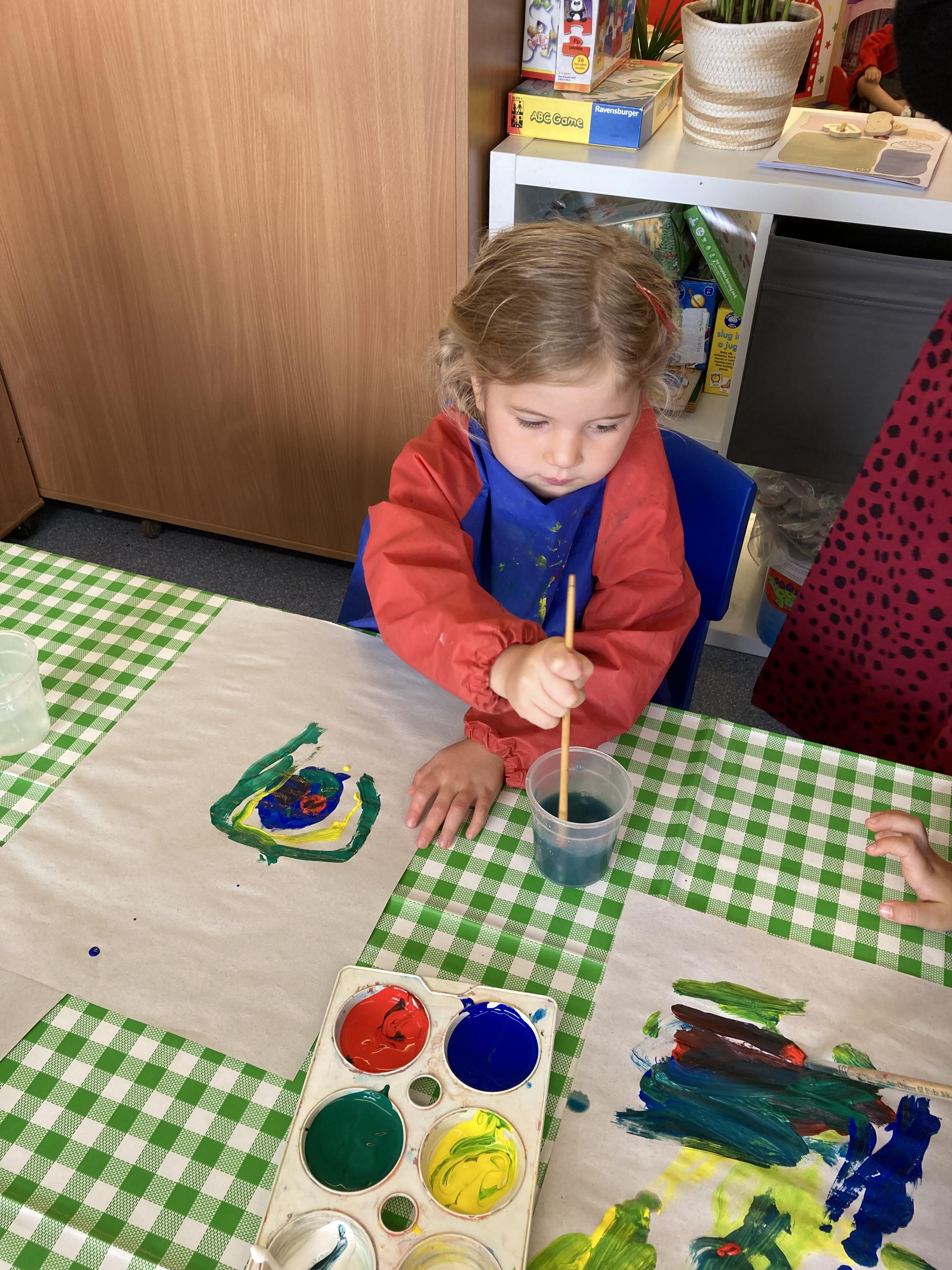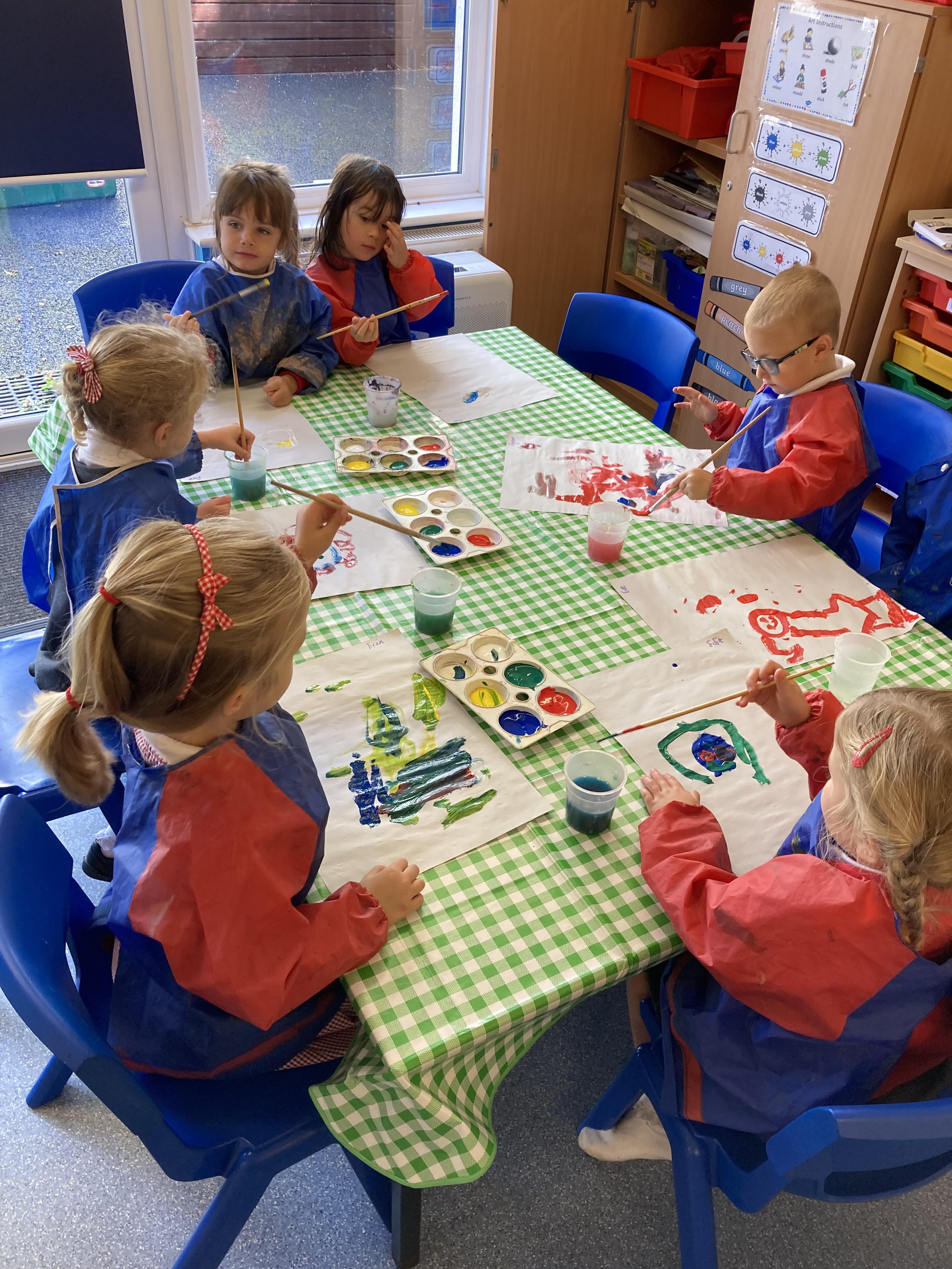 Towards the end of the week we starting looking at night and day and discussing all the things we see at night. The children used water paints to paint a night time picture and also shared their bedtime routines.