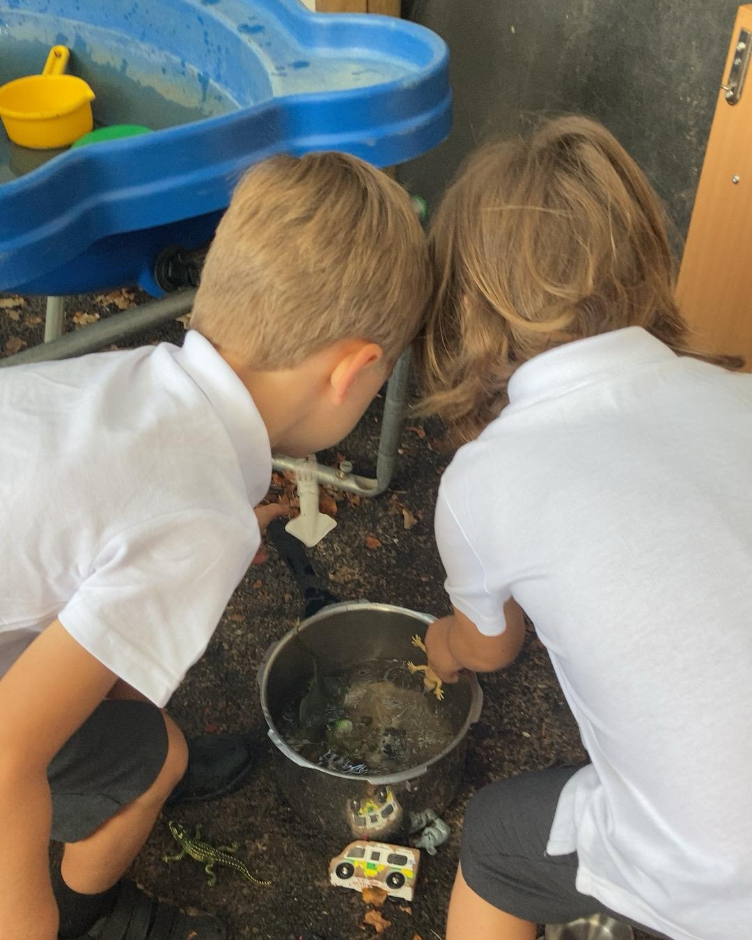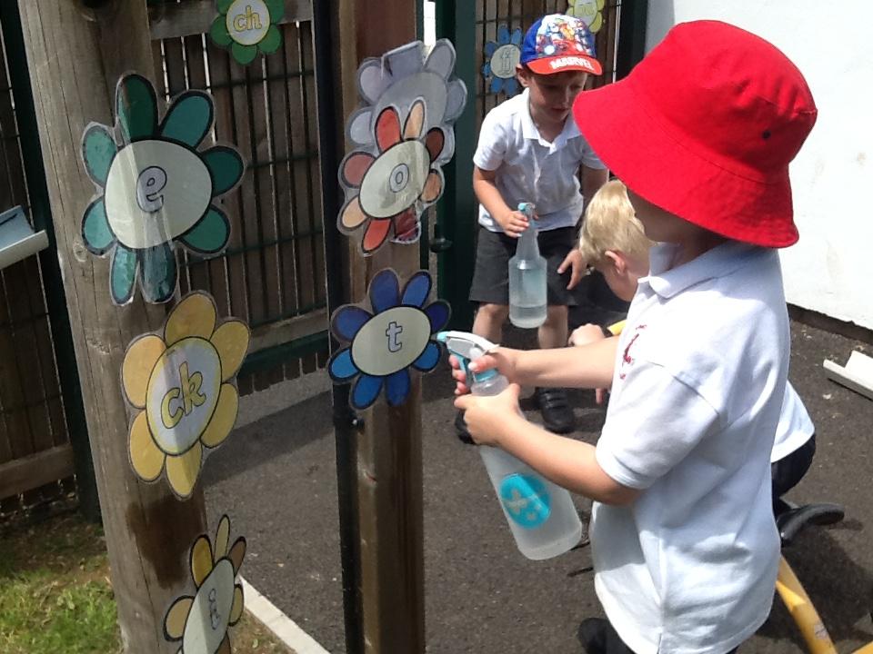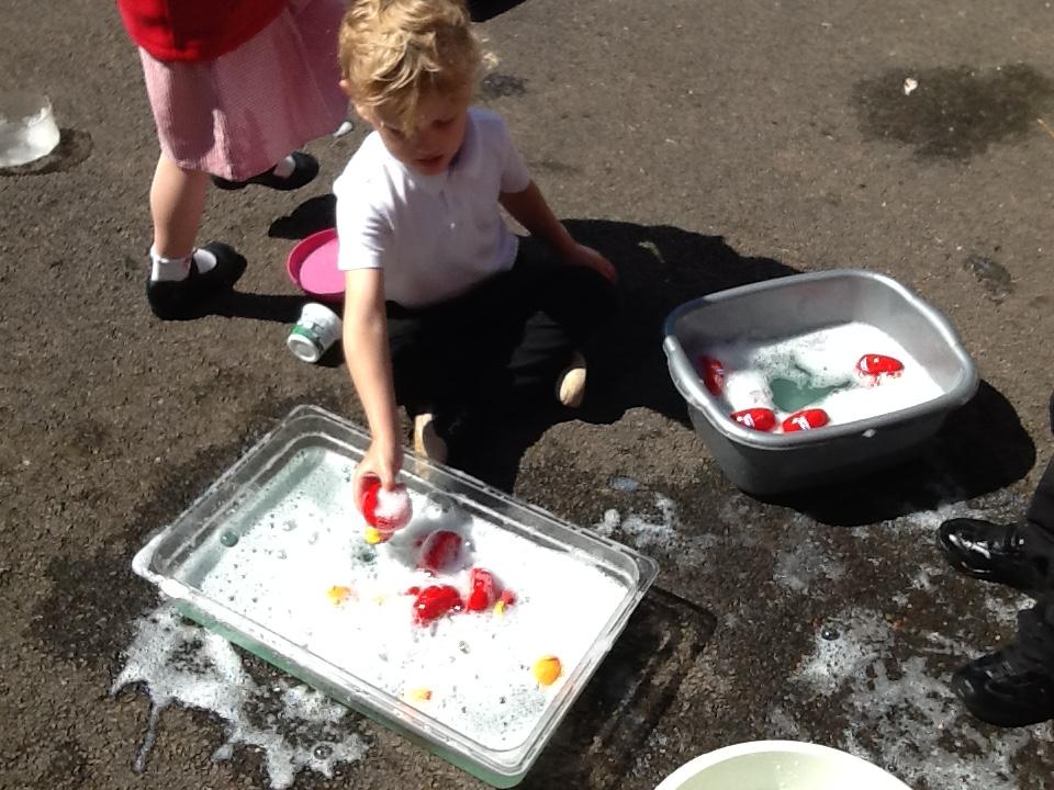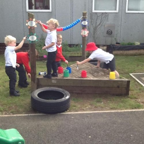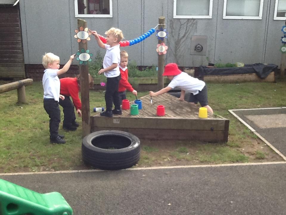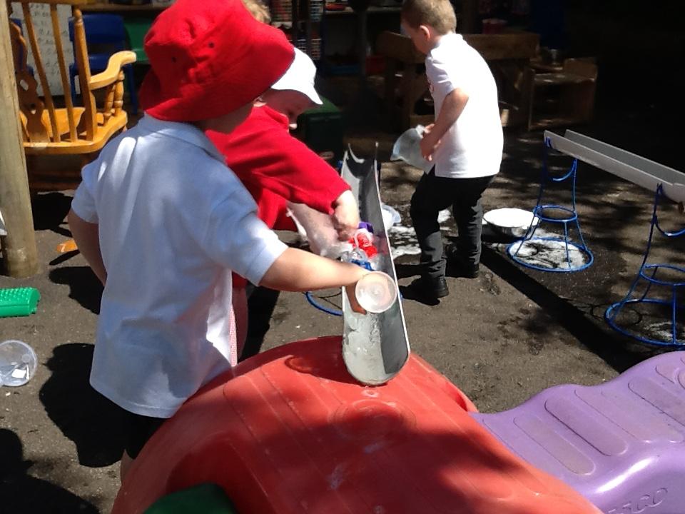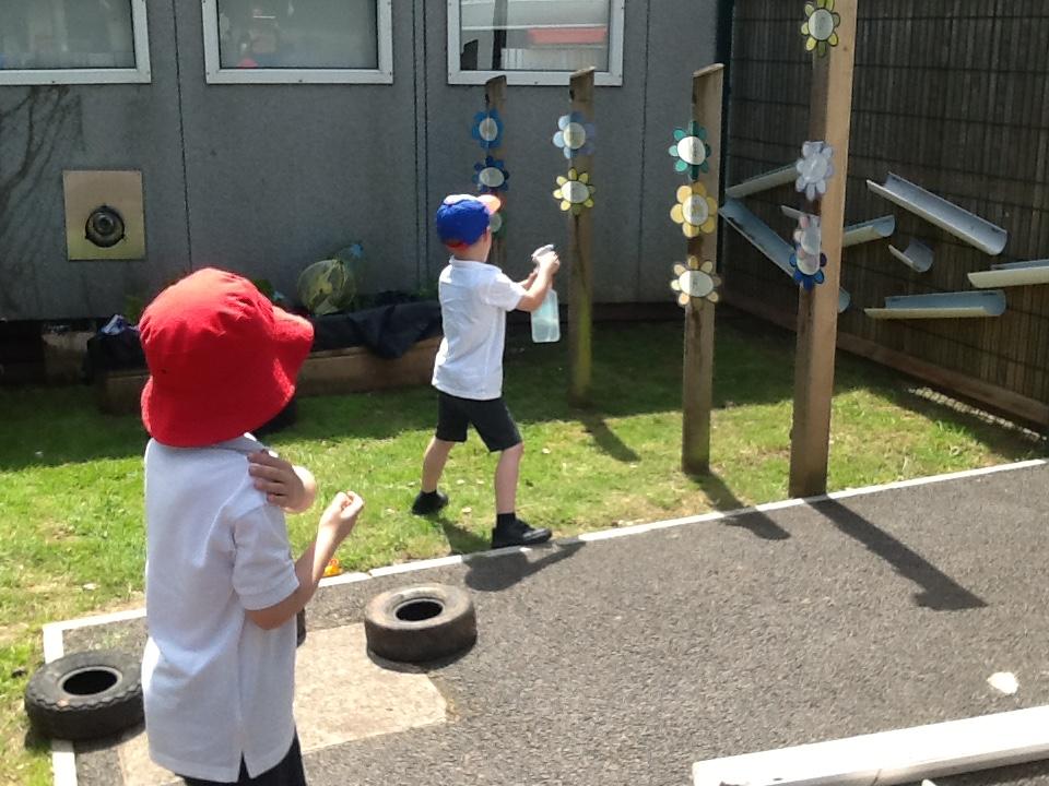 This week the children have been enjoying the sunshine! They have loved being in the outdoor area. As you can see from the photos below, lots of wonderful own learning taking place!