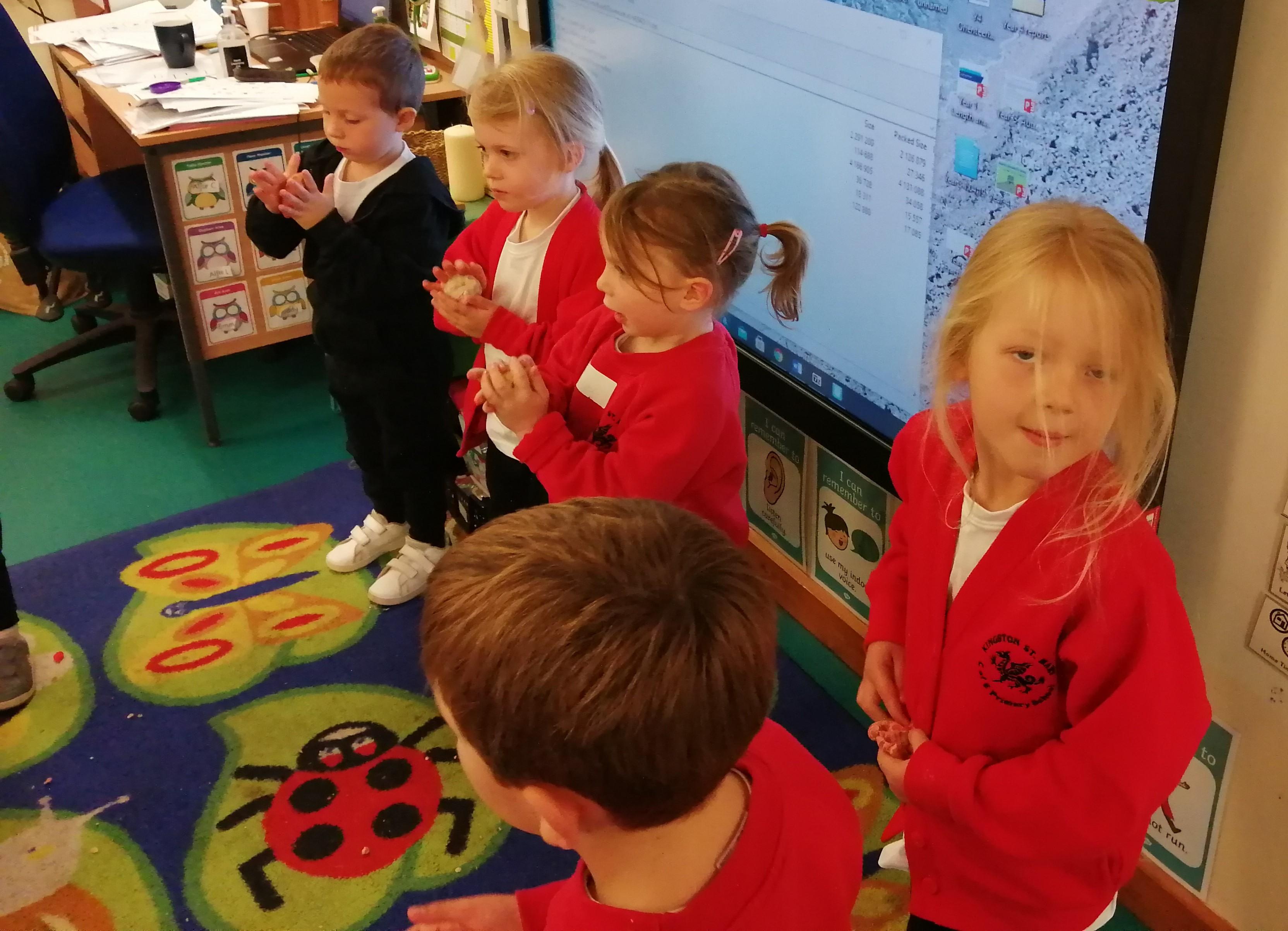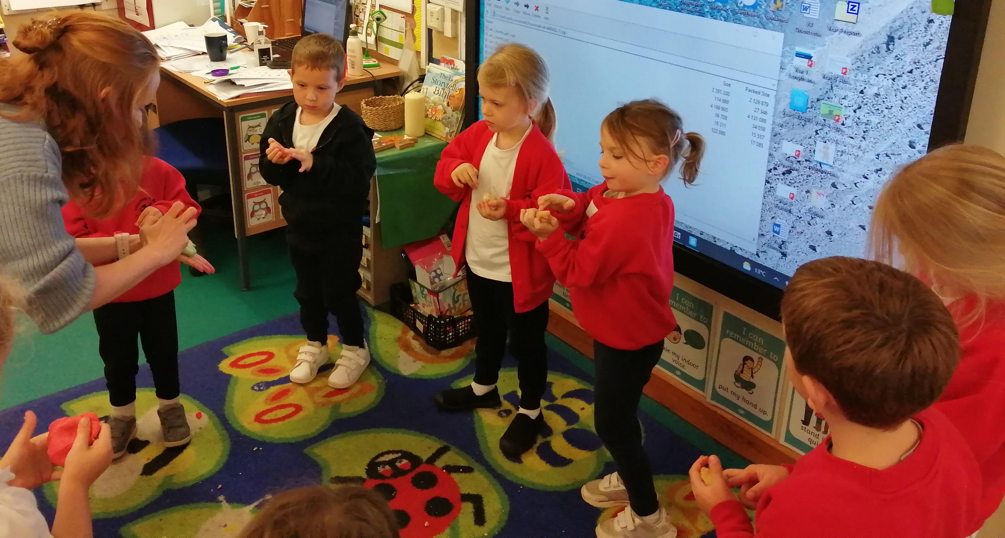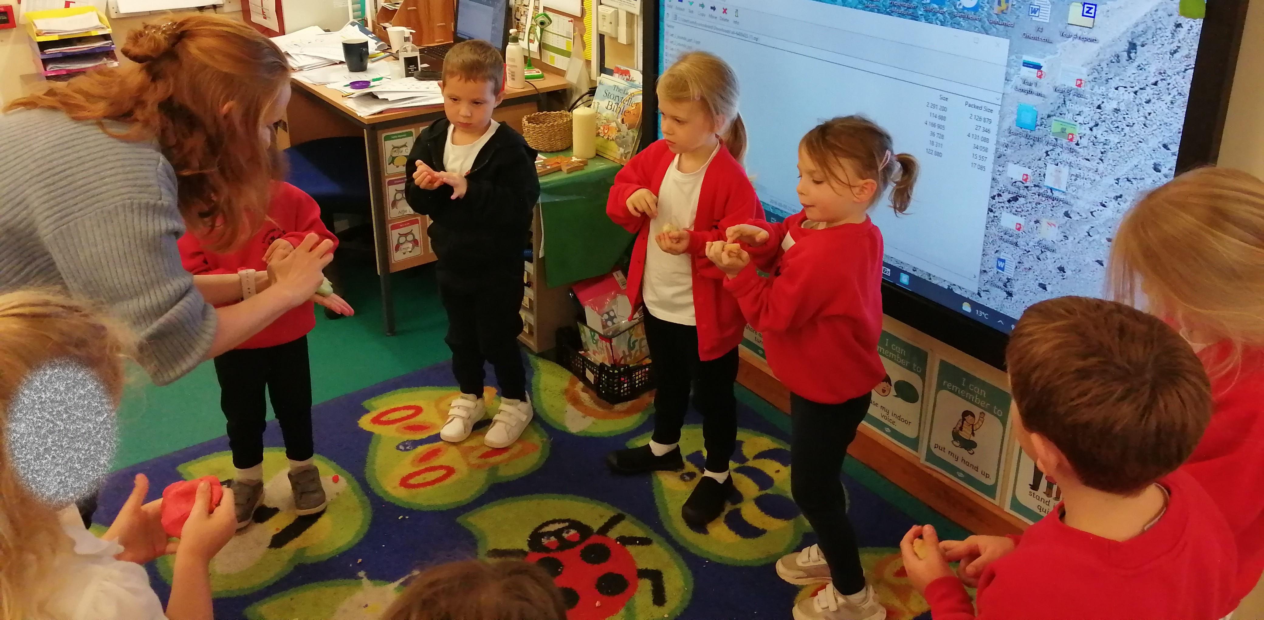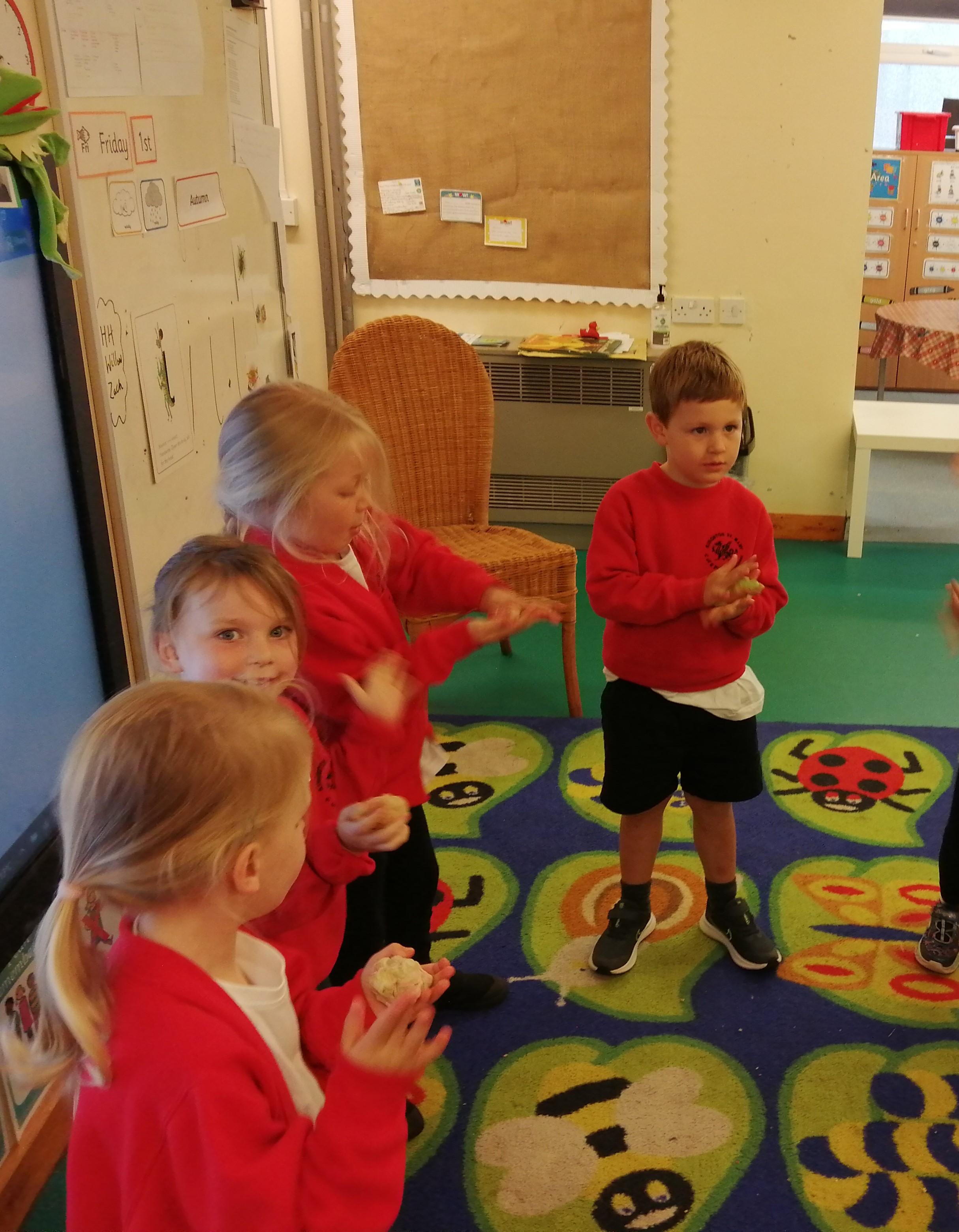 The pictures below are Reception having their daily dose of 'Dough Disco'.