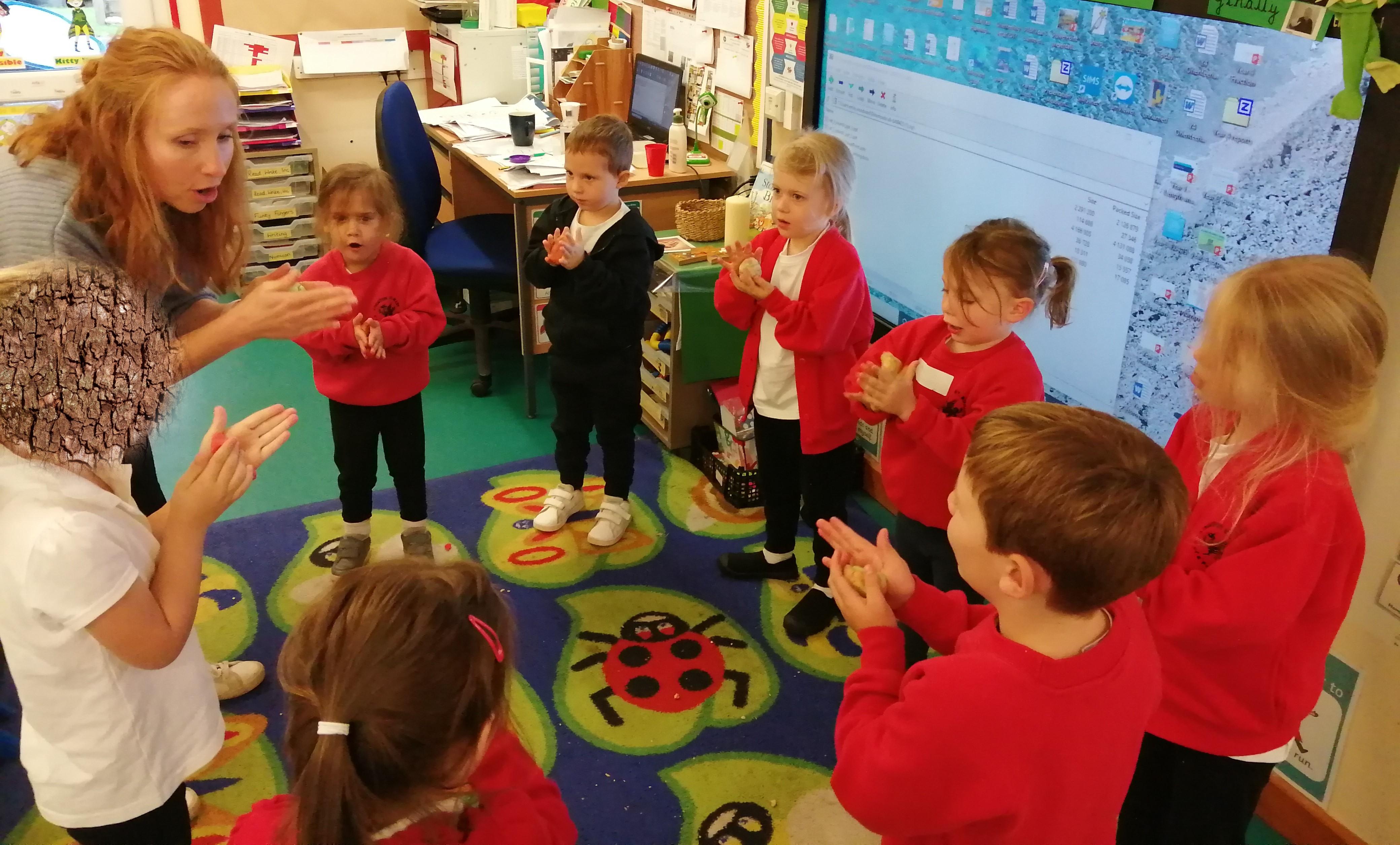 To support the development of motor skills, children in Reception and Year 1 take part in Dough Disco on a daily basis. While dancing to music, the children manipulate dough to exercise their fingers in preparation for writing. It's really easy to do and the benefits are AMAZING!