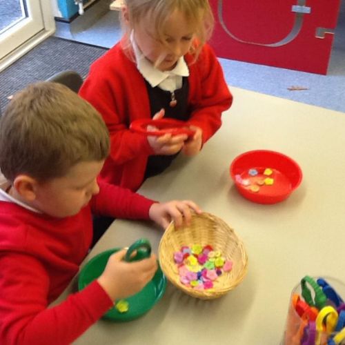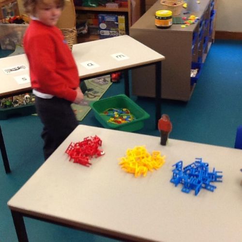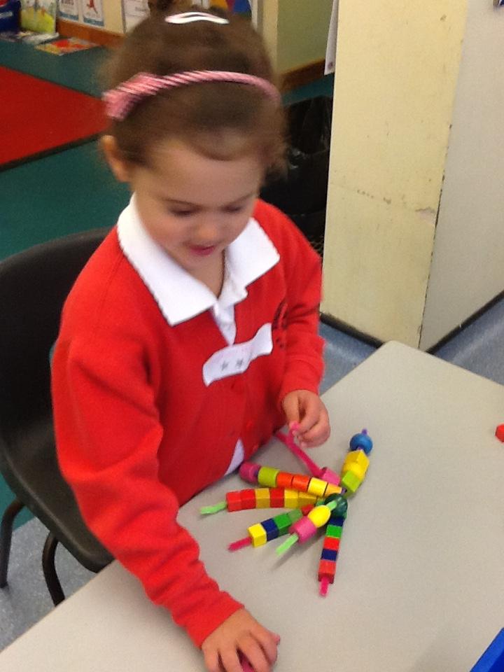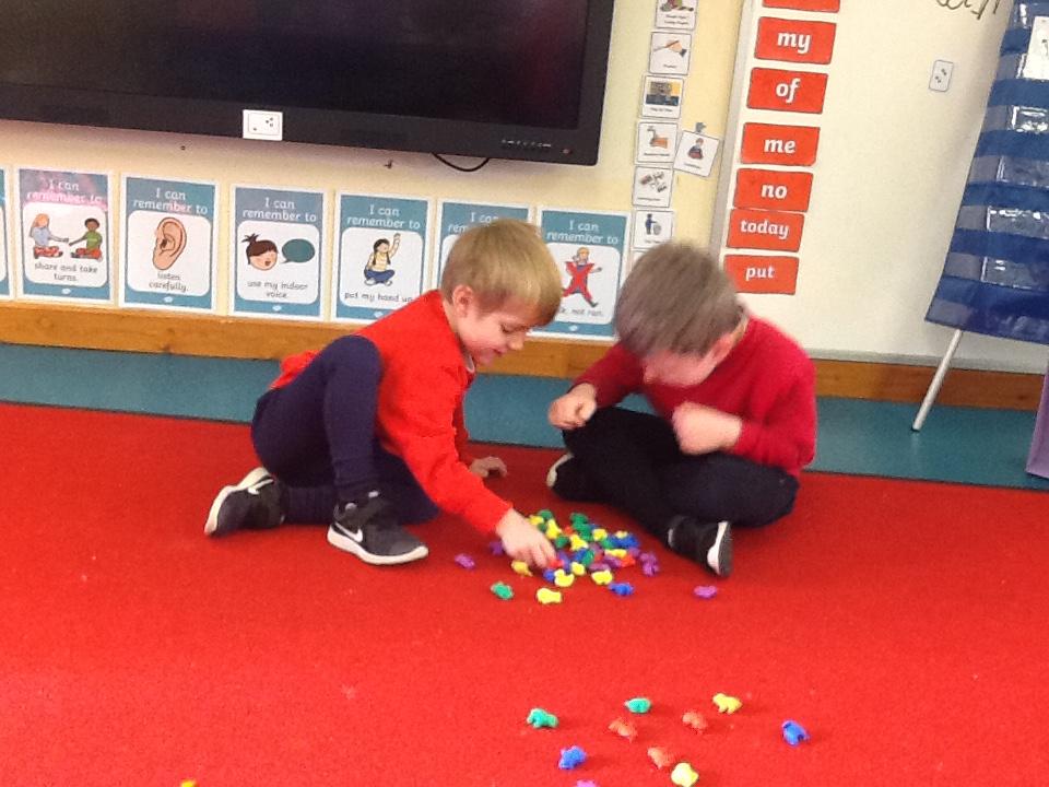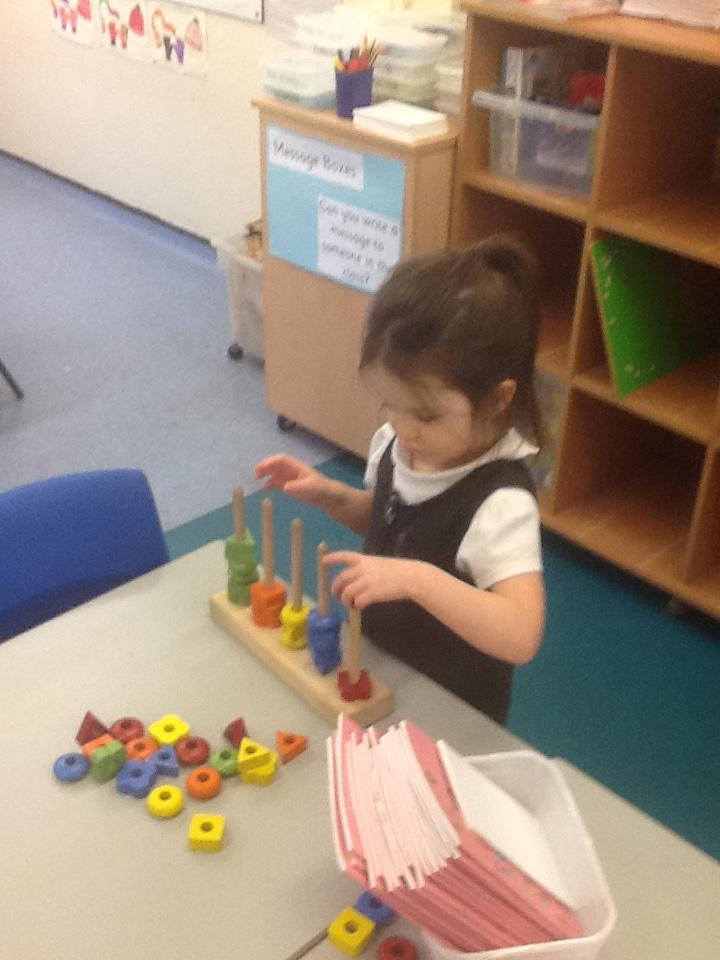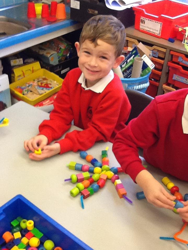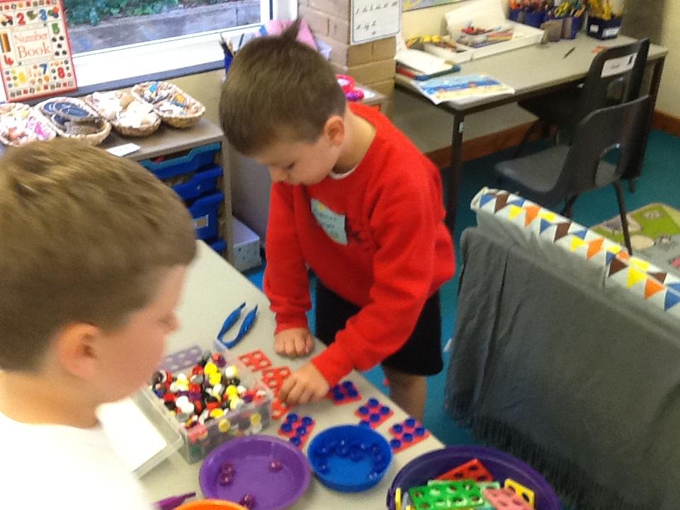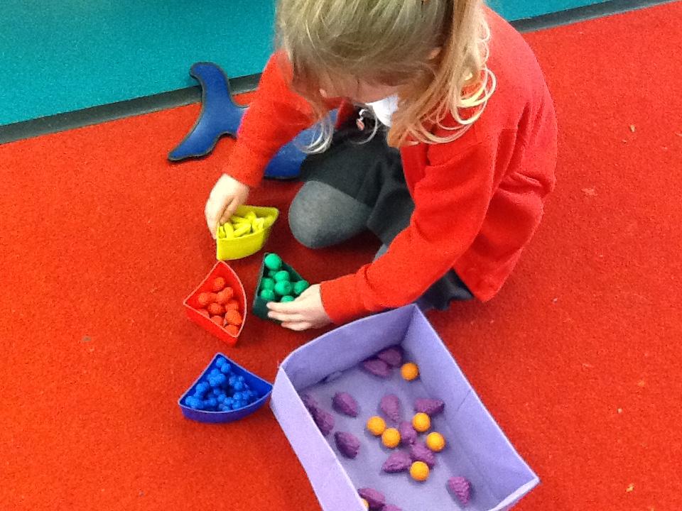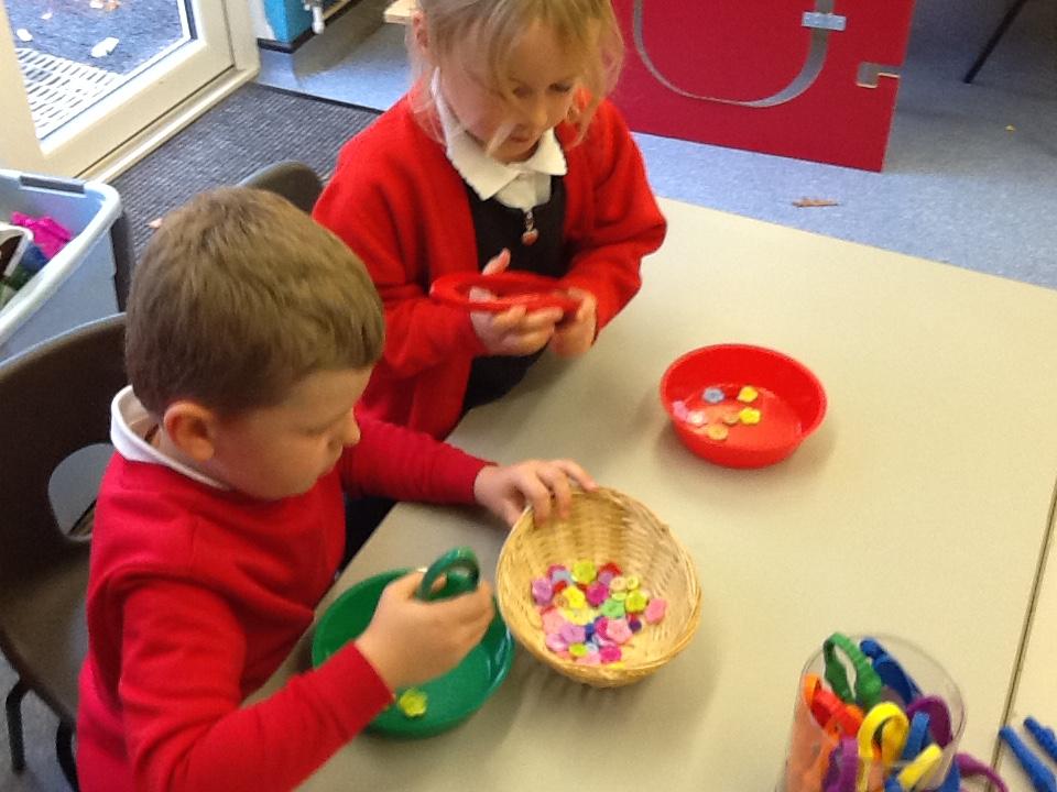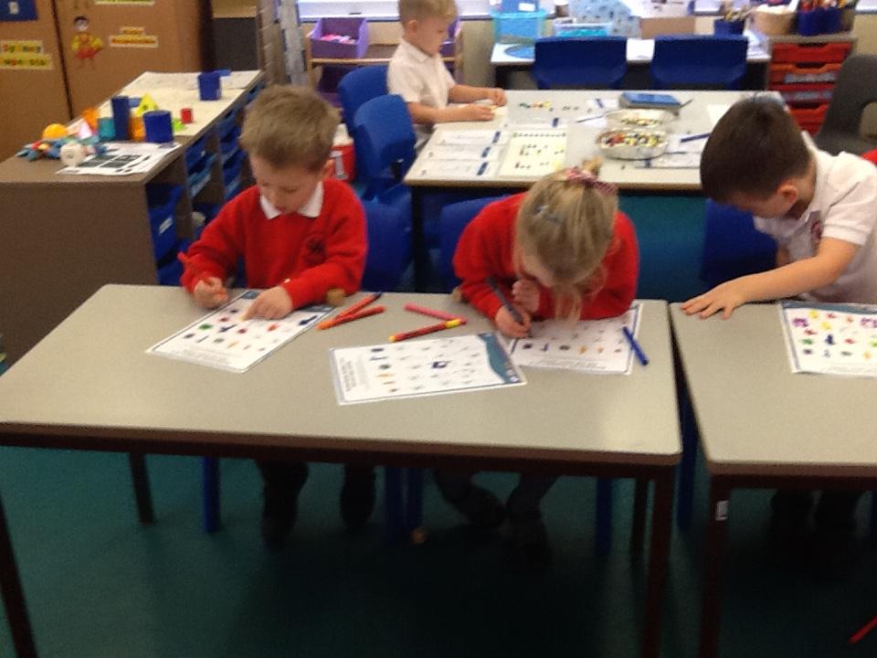 In Maths the children have been sorting objects, comparing numbers using 'more and 'fewer' and making repeating patterns.