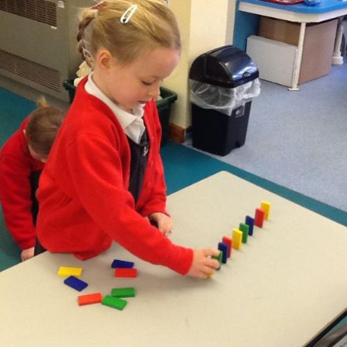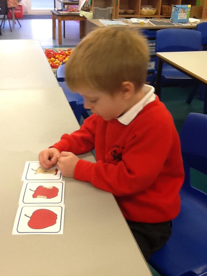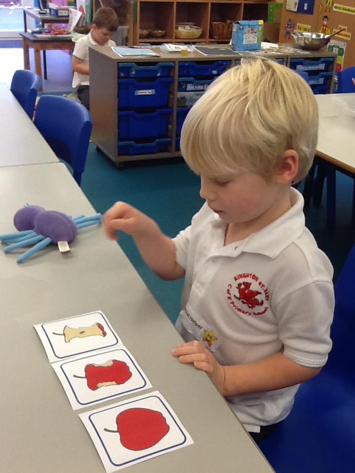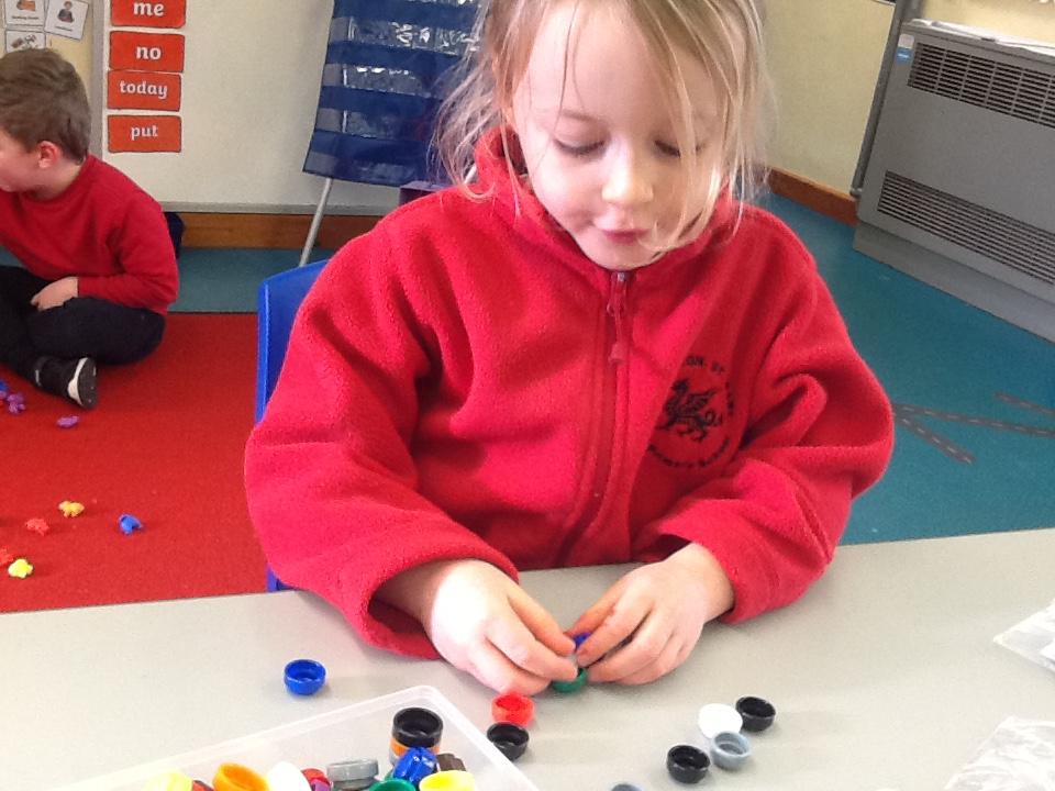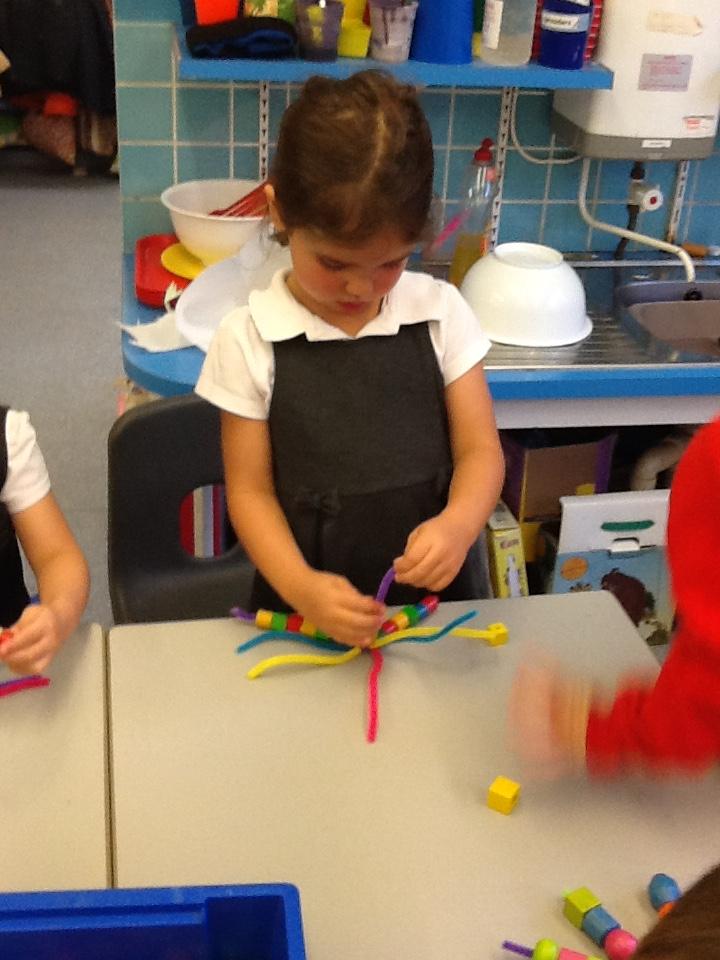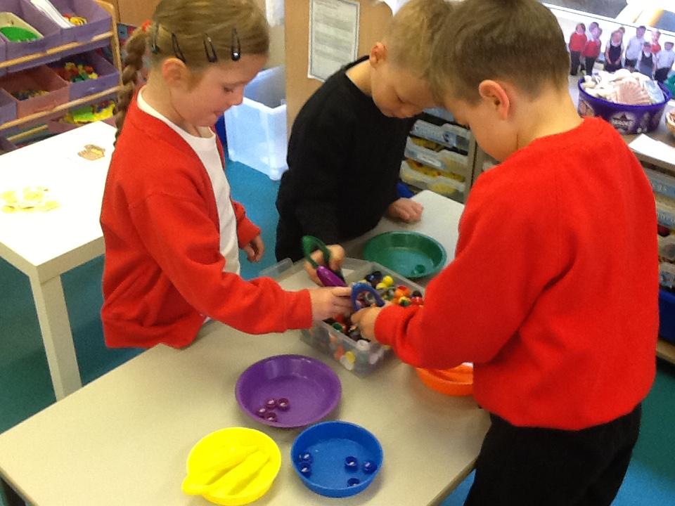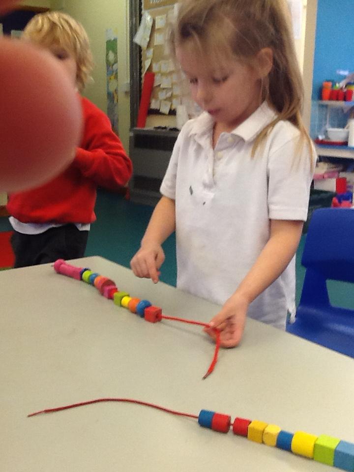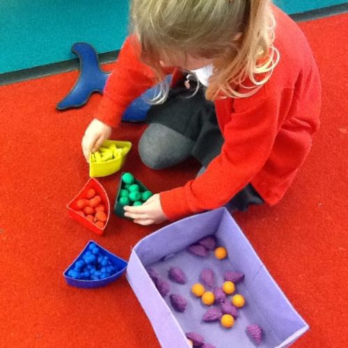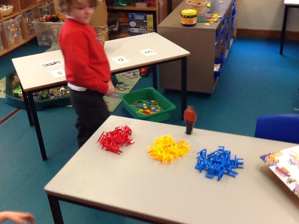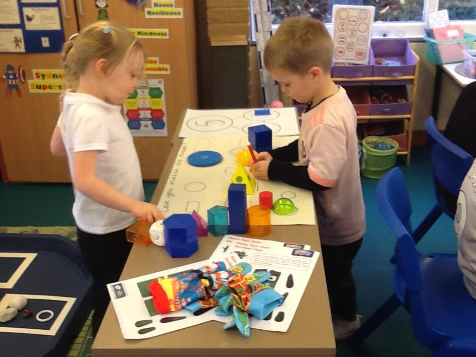 In Maths the children have been sorting objects, comparing numbers using 'more and 'fewer' and making repeating patterns.