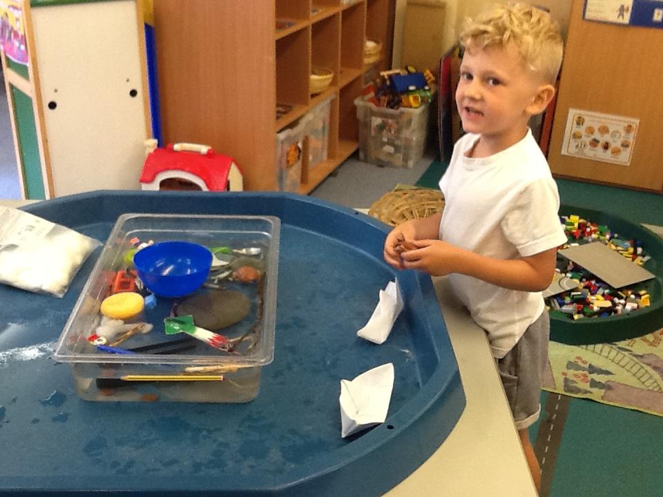 As part of our seaside topic the children looked at floating and sinking. They did an experiment to see which objects float and which objects sink. We then moved on to making our own paper boats.