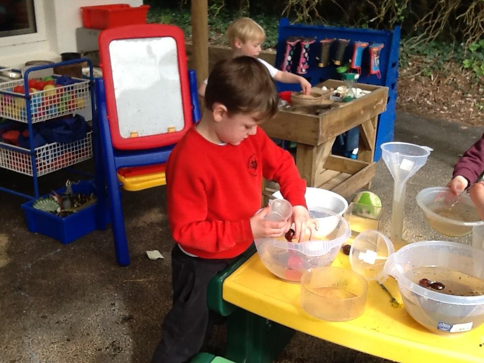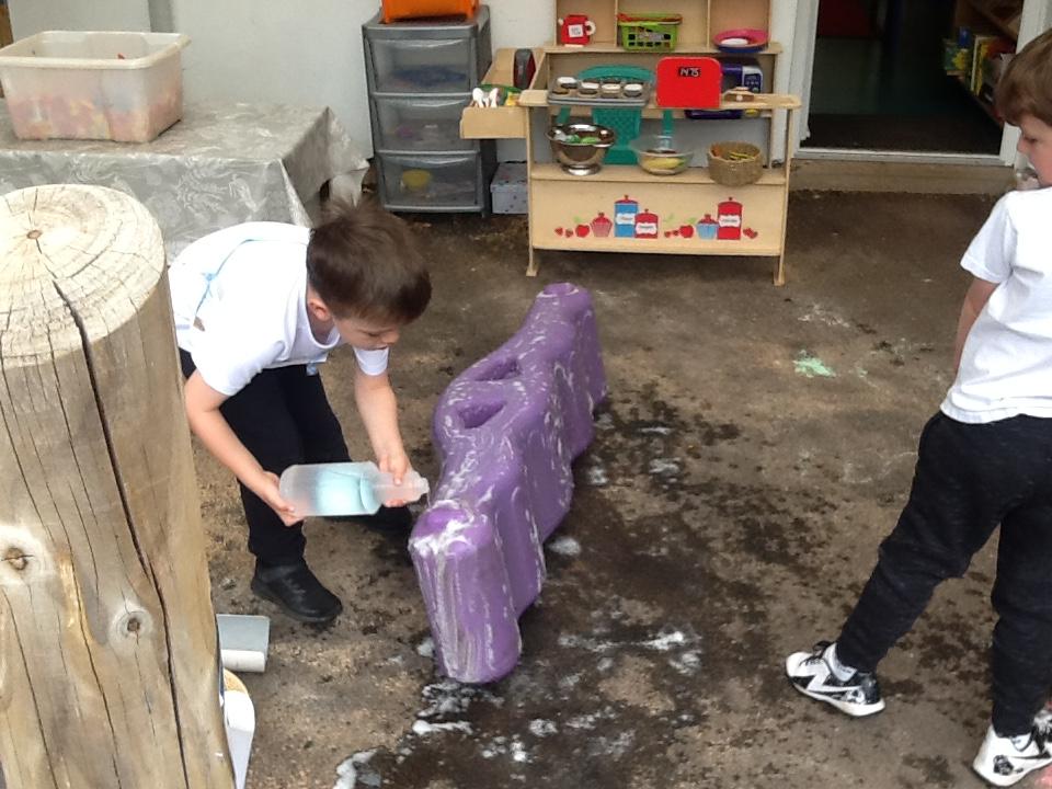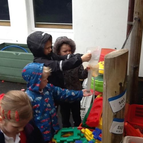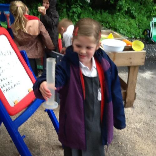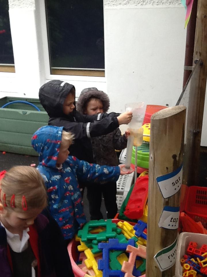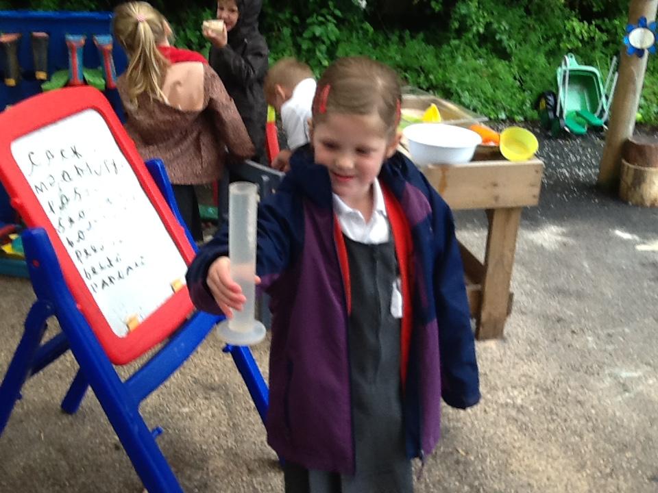 During own learning time the children have been collecting the rain water, measuring to see who had the most. This was great fun!