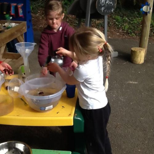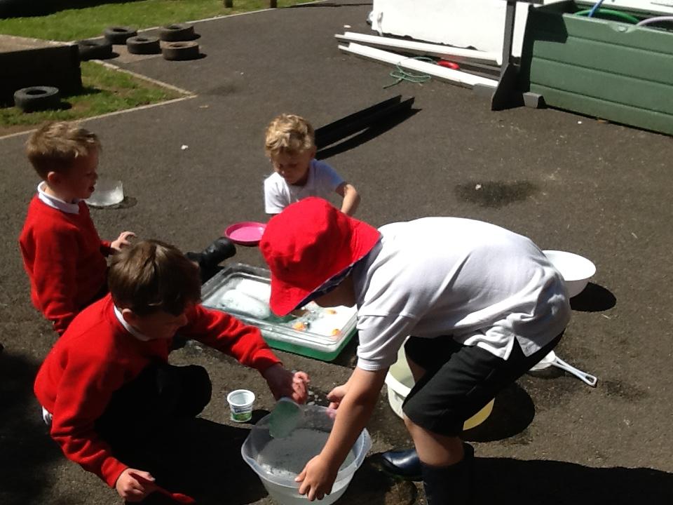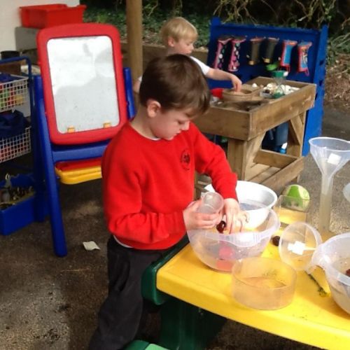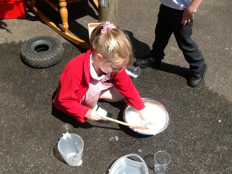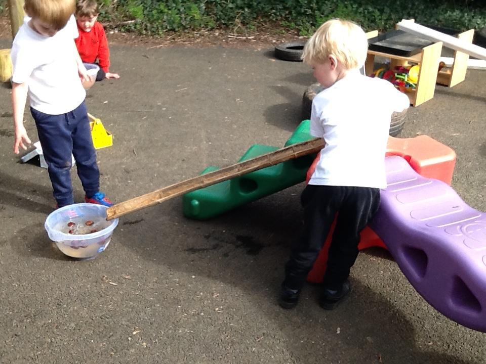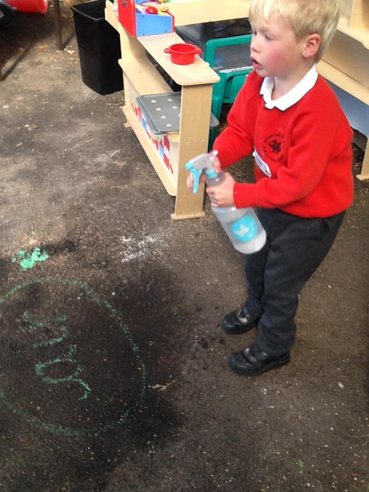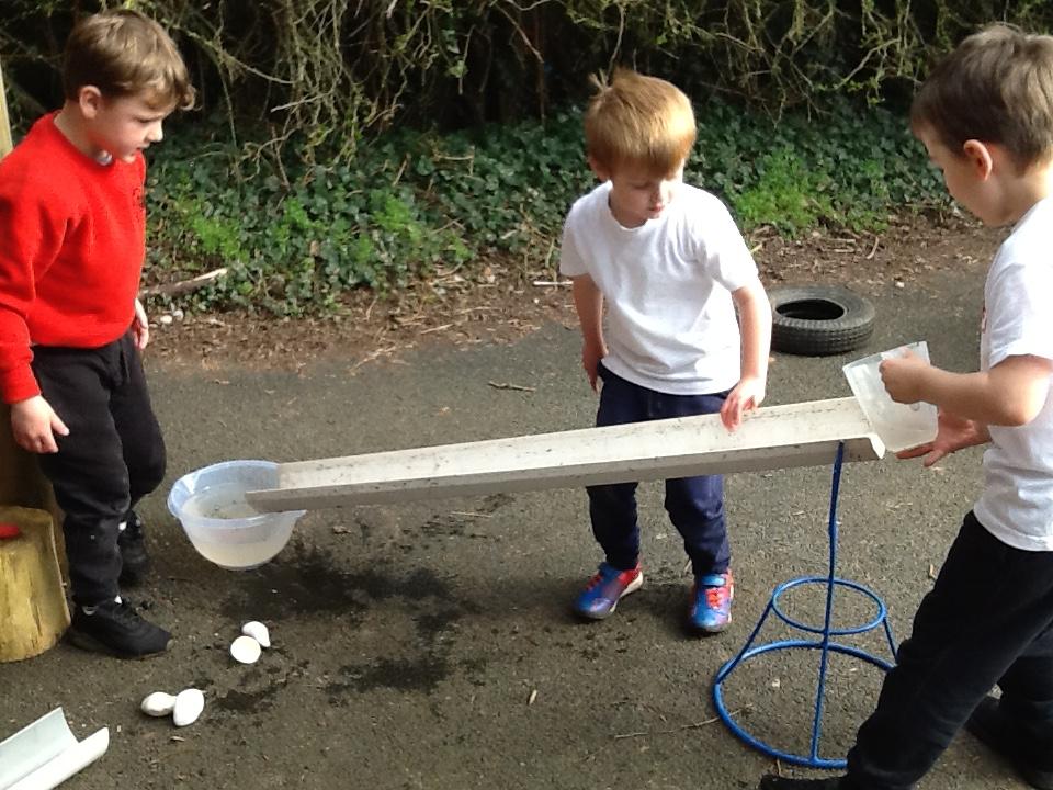 During own learning time the children have been collecting the rain water, measuring to see who had the most. This was great fun!