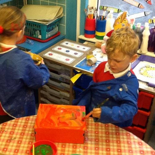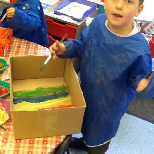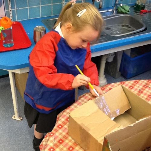 This week the children have had lots of outdoor own learning! They have enjoyed playing in the mud kitchen and making obstacle courses for their bikes. The art area has also been very busy this week, lots of fantastic ideas and models being made out of junk.
