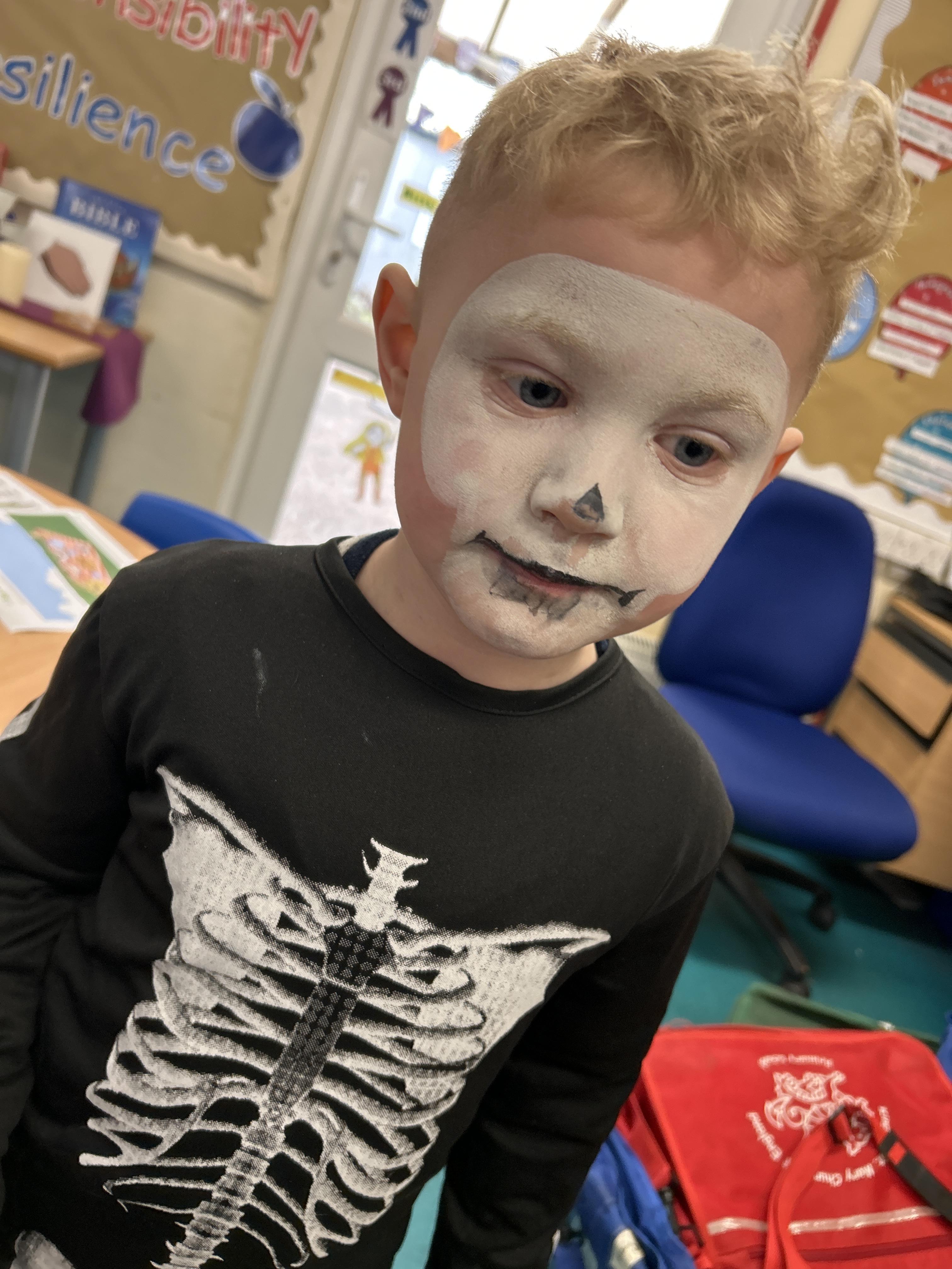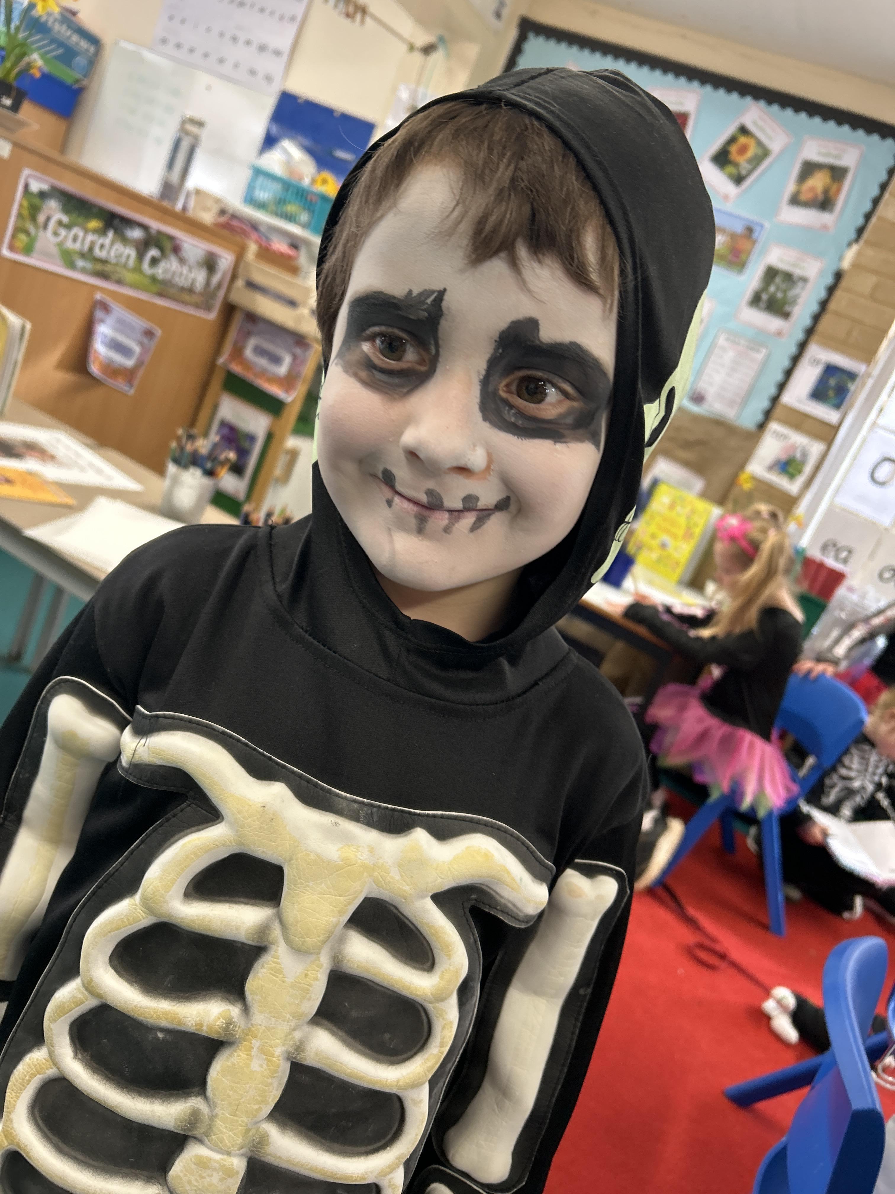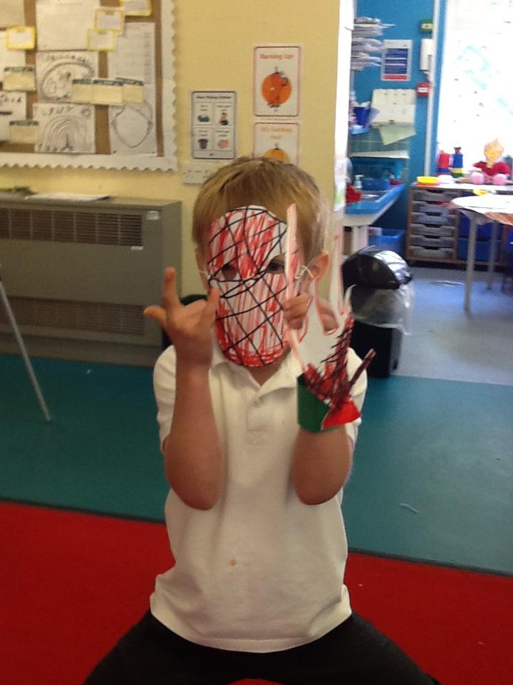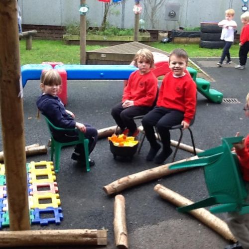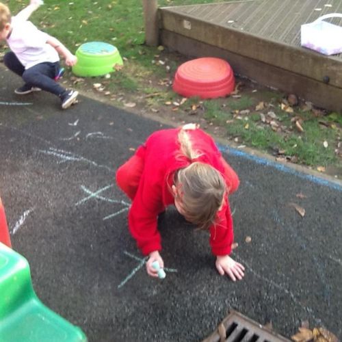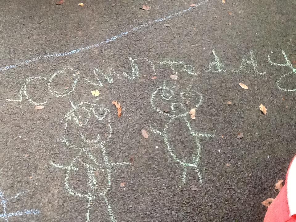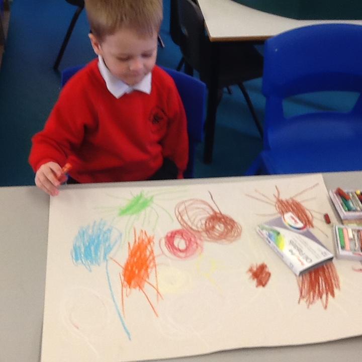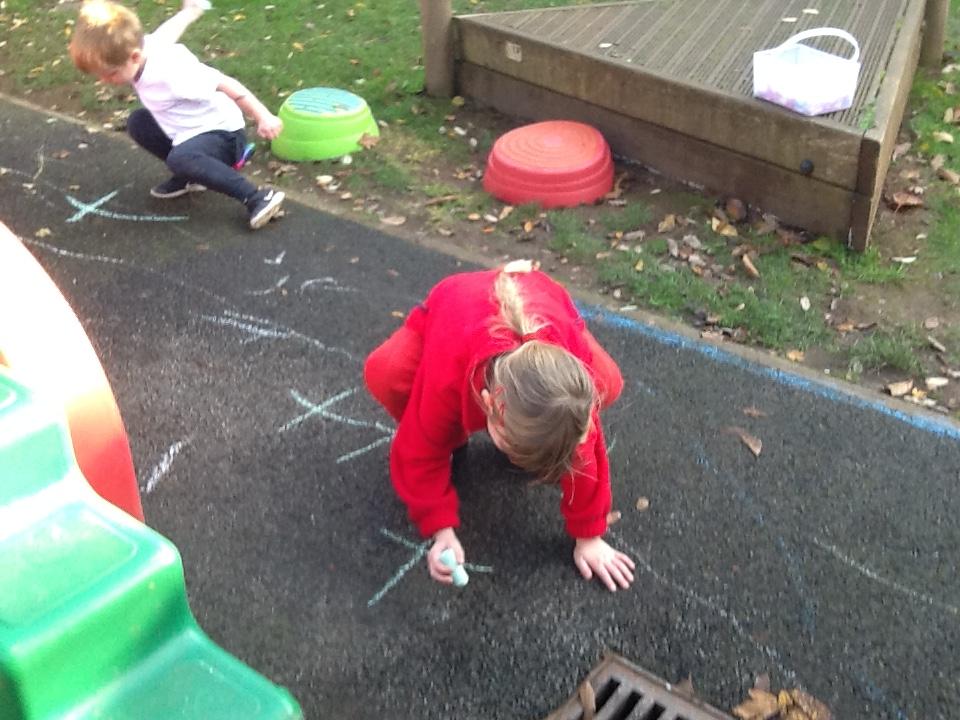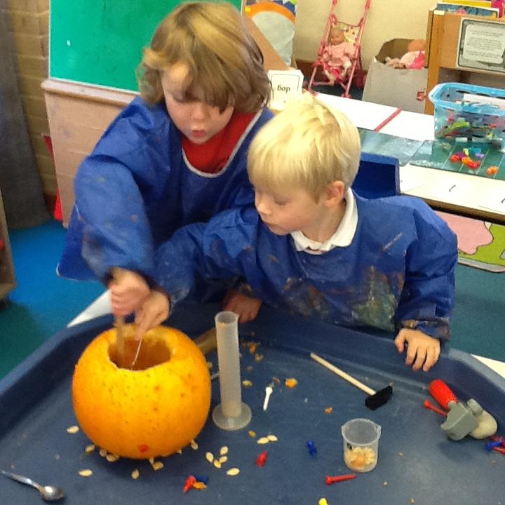 Today (21st) the children enjoyed putting on their wet weather clothes and wellies and had a play in the rain. They also enjoyed a class discussion about Halloween and had the chance to draw their own scary pumpkins.