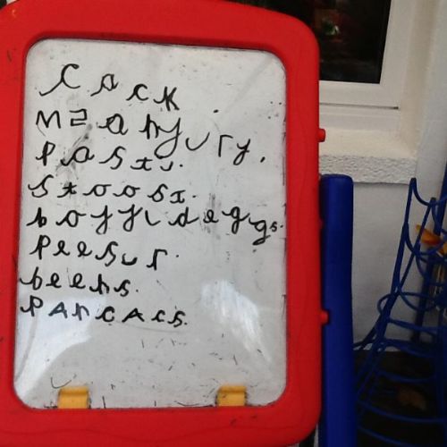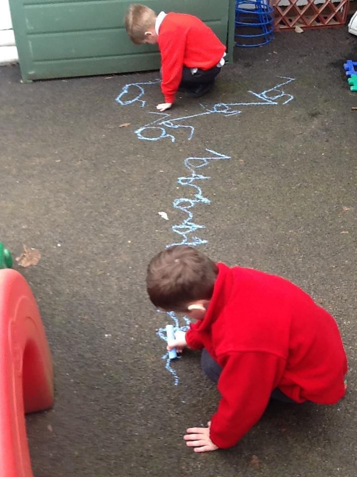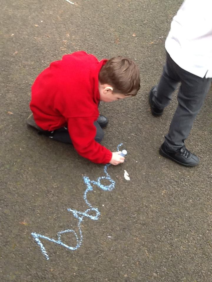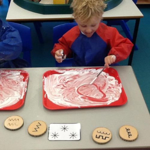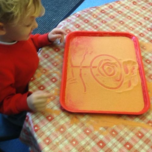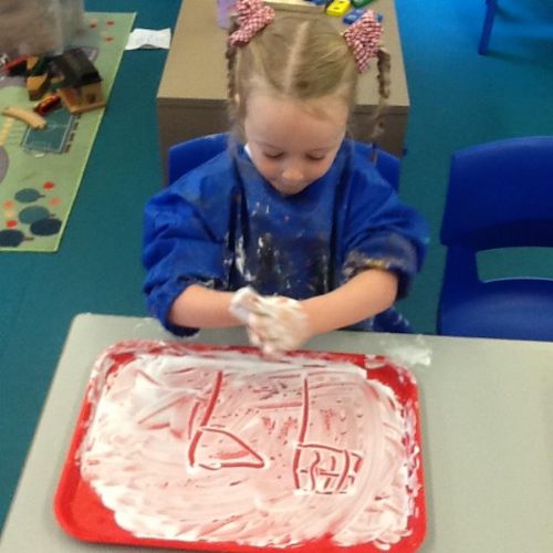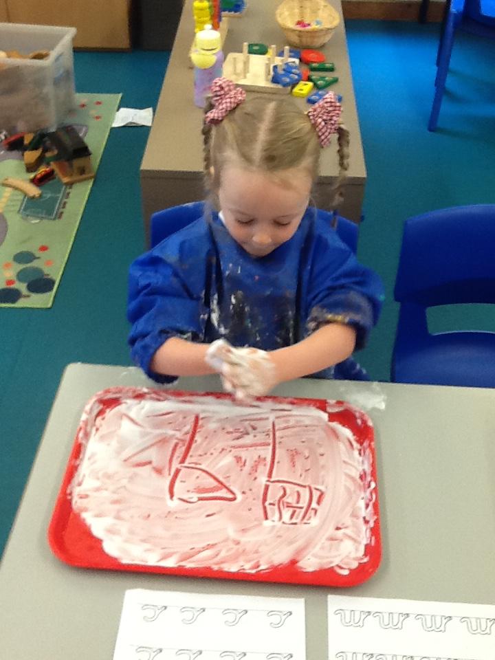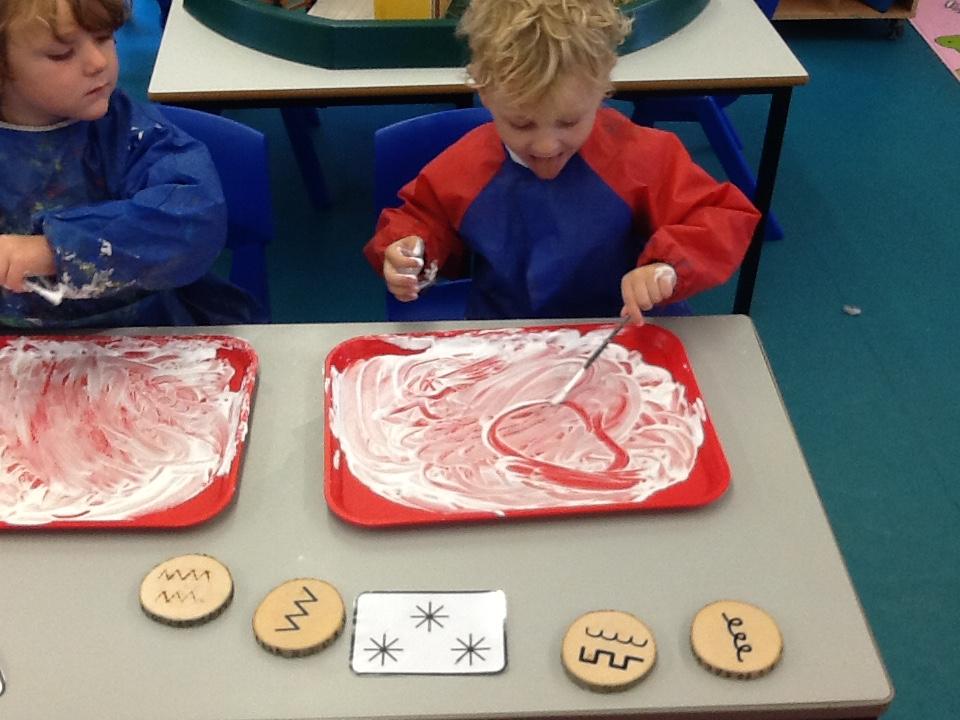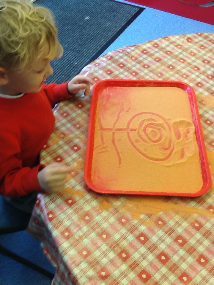 Writing our sounds in shaving foam/ mark making