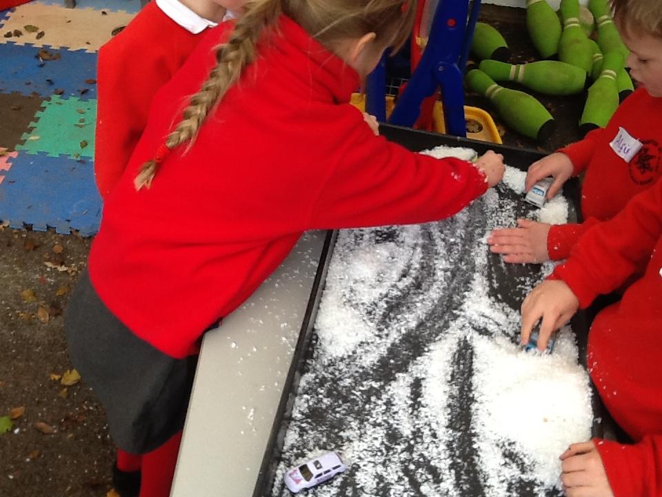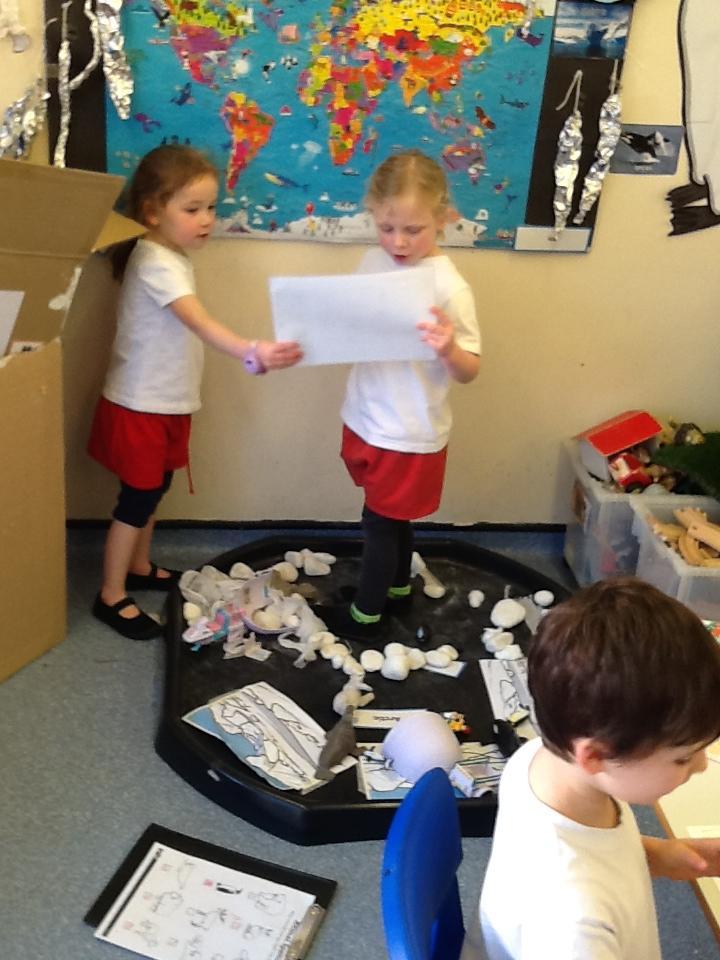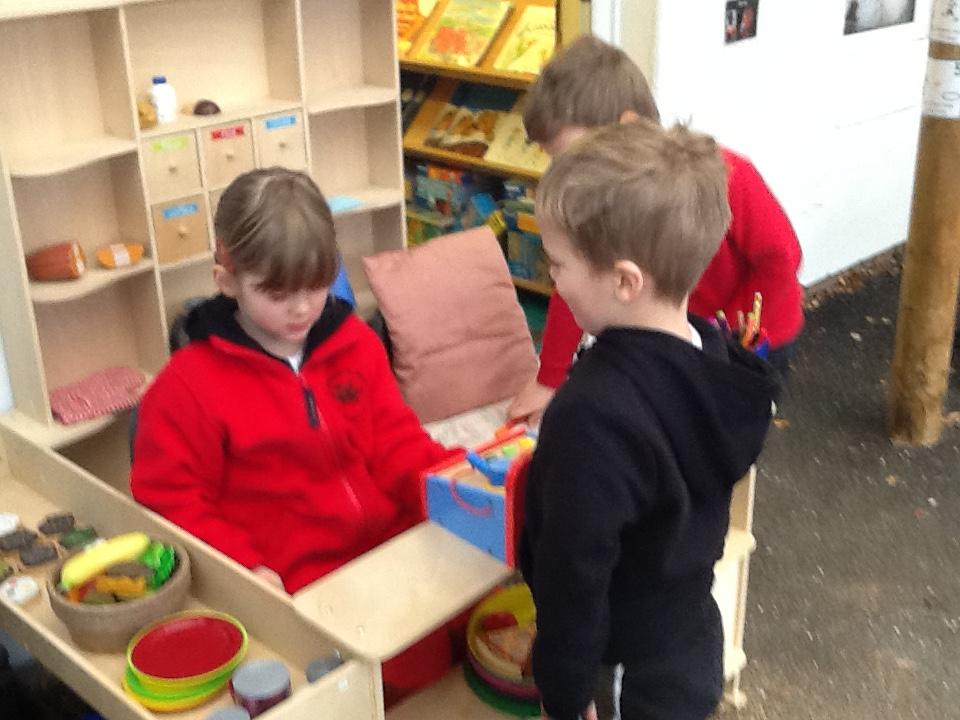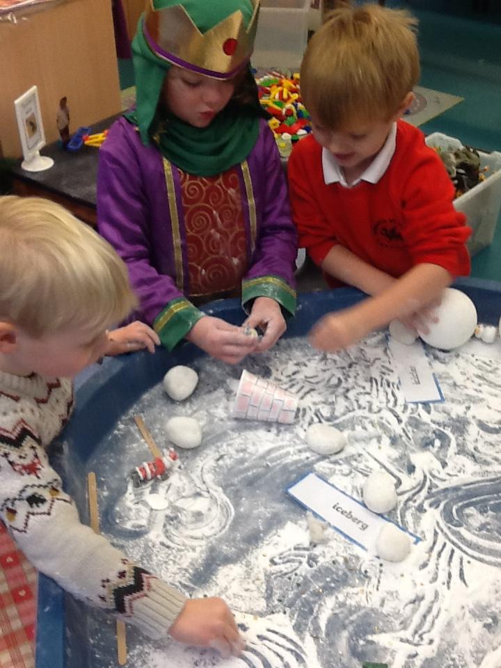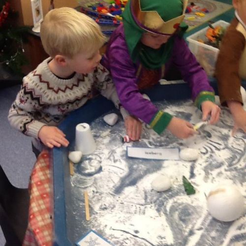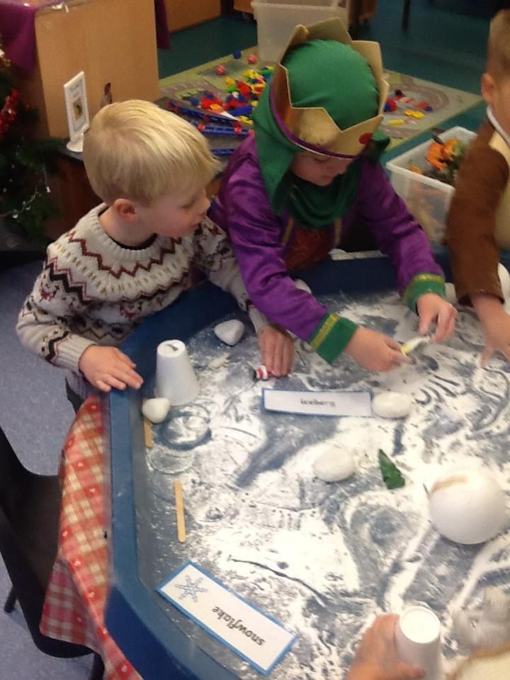 During own learning time they have enjoyed playing with the pretend snow and cars, Mobilo and the outdoor role play shop. They have also helped to set up Santa's grotto and have been busy writing letters and wrapping presents.