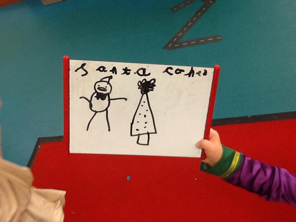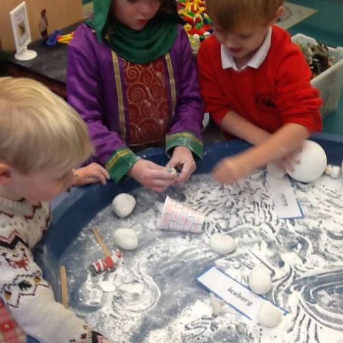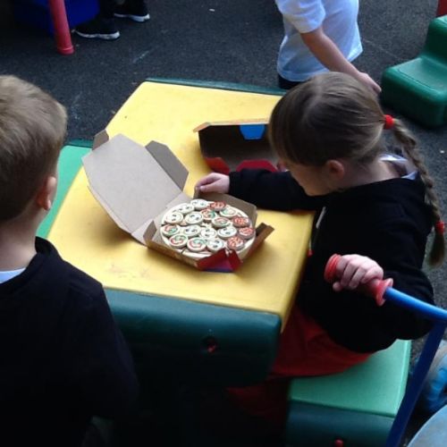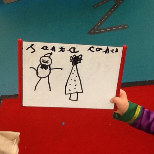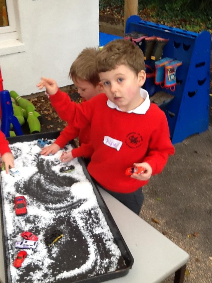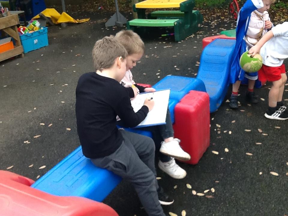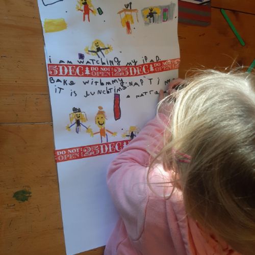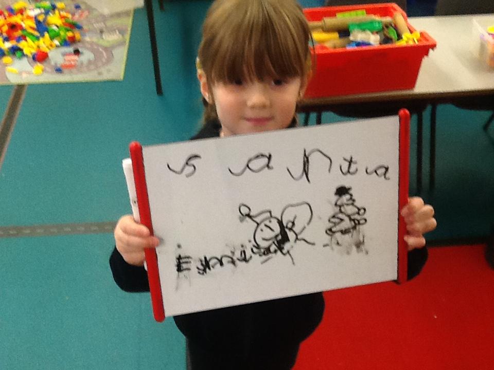 During own learning time they have enjoyed playing with the pretend snow and cars, Mobilo and the outdoor role play shop. They have also helped to set up Santa's grotto and have been busy writing letters and wrapping presents.