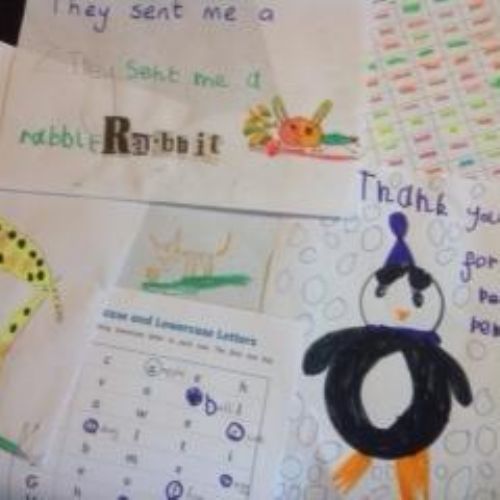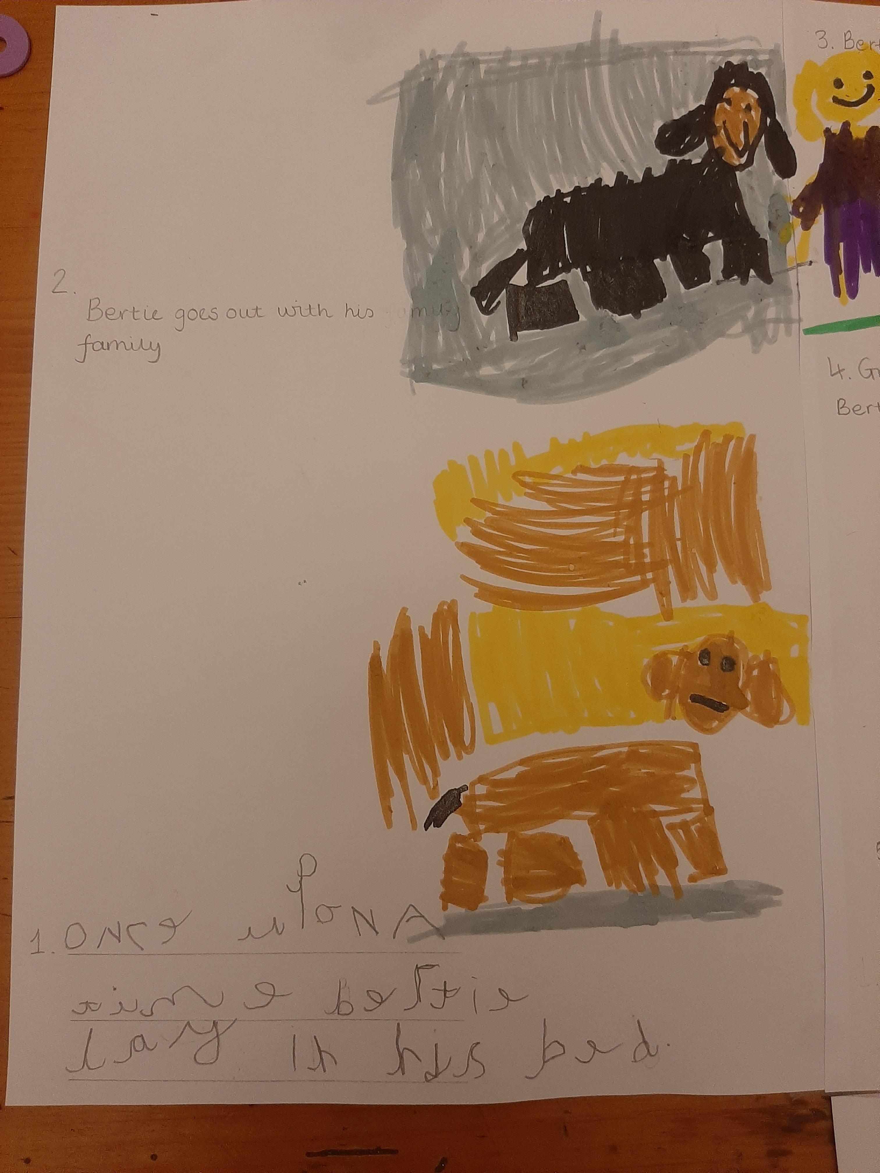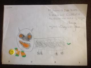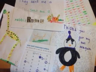 We have had a new addition to the class this week and that was a cute little black cat. He is a little cheeky and likes to come in to the school. The children were so fascinated with him that they decided to draw his picture and to write him a card.