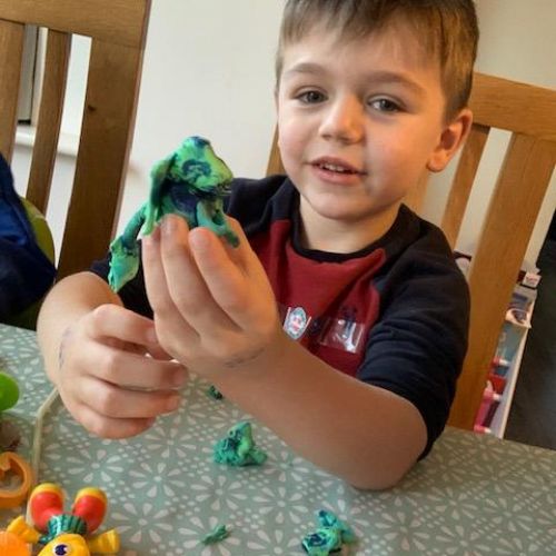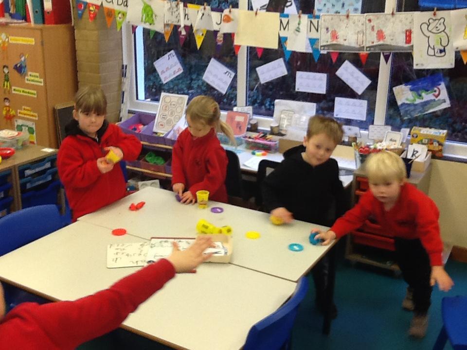 This week the children have been taught the e and f sounds. They used their playdough to create something beginning with f.
