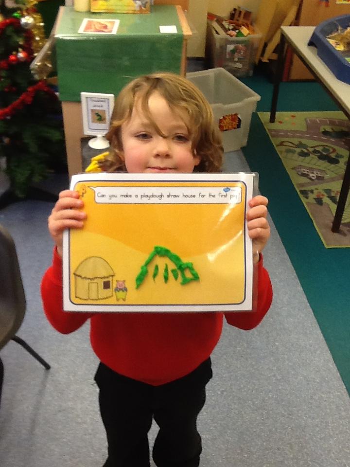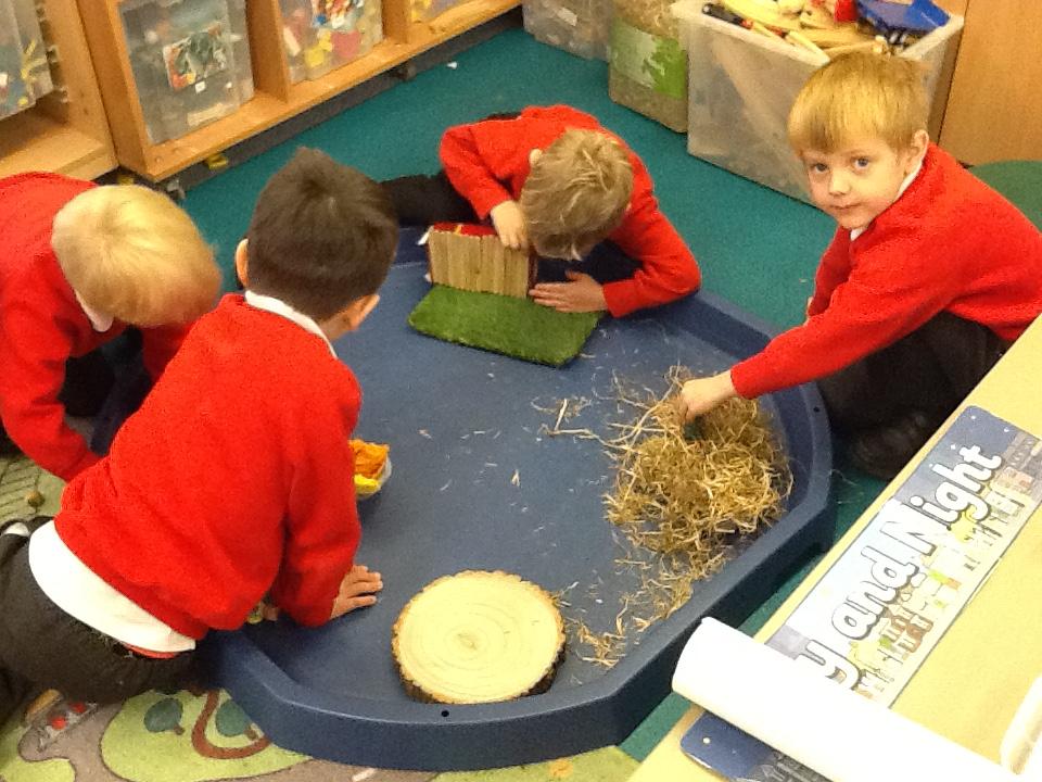 Our story focus for the next few weeks is The Three Little Pigs. The children enjoyed retelling the story using small world toys and have made a house of straw, sticks and bricks.