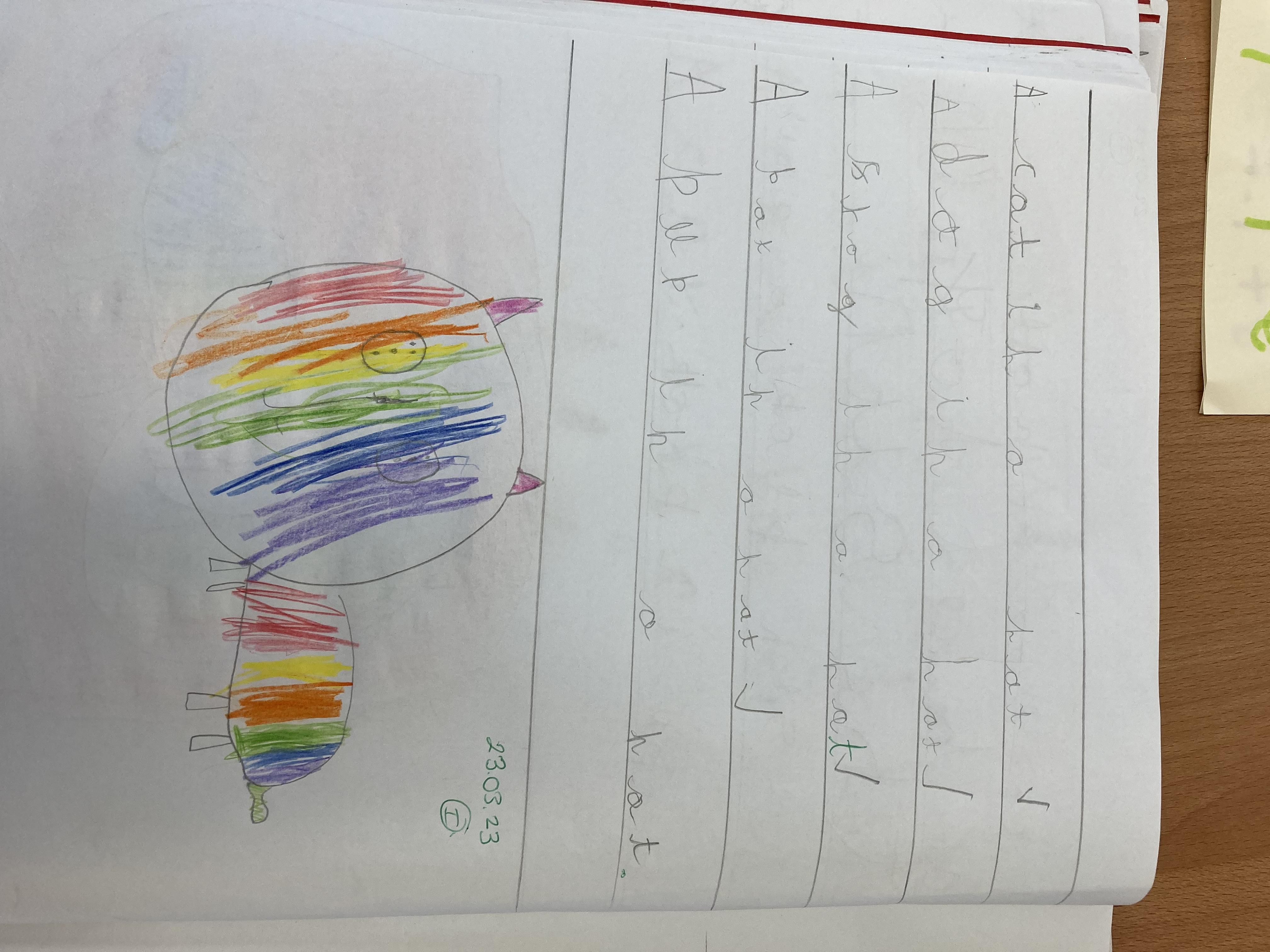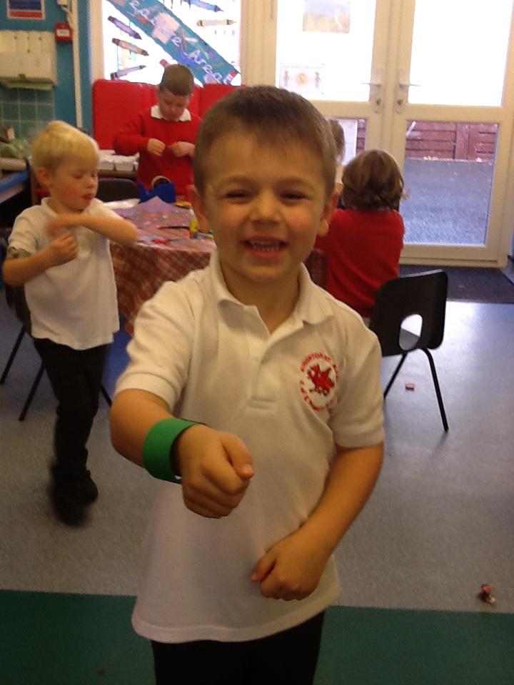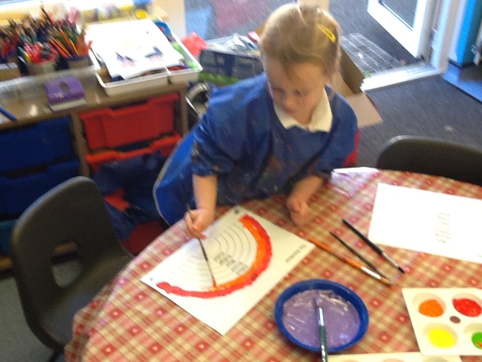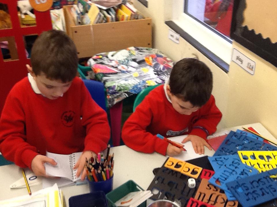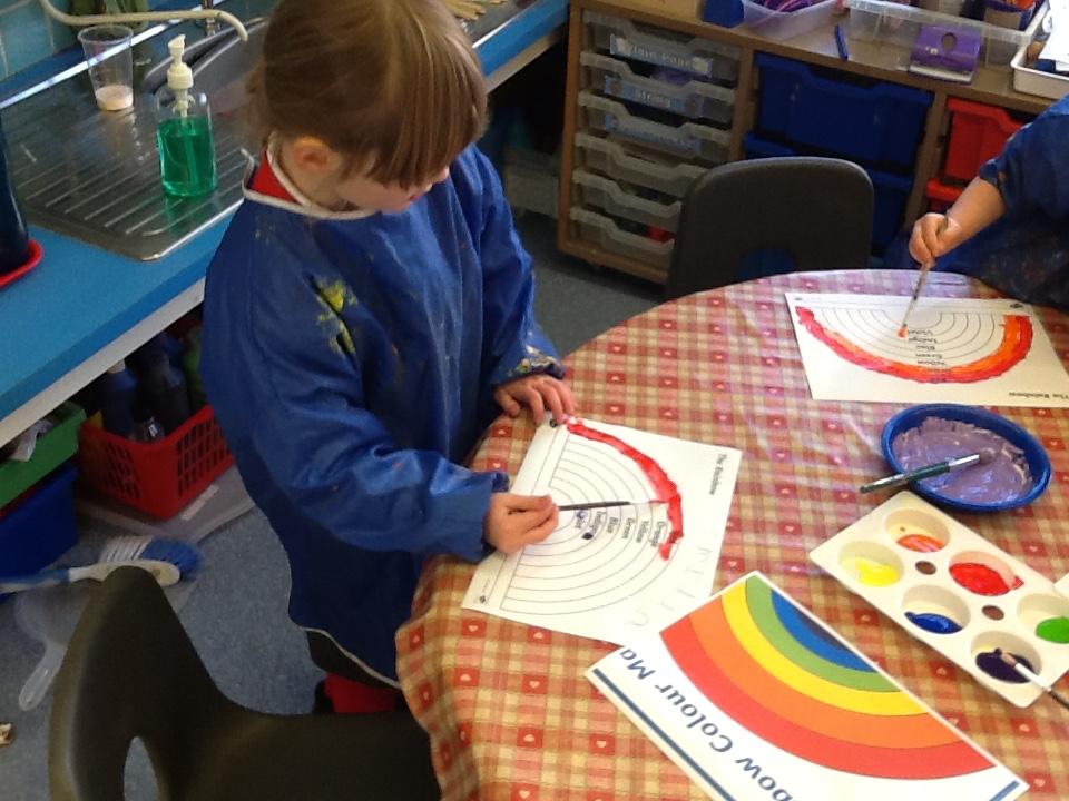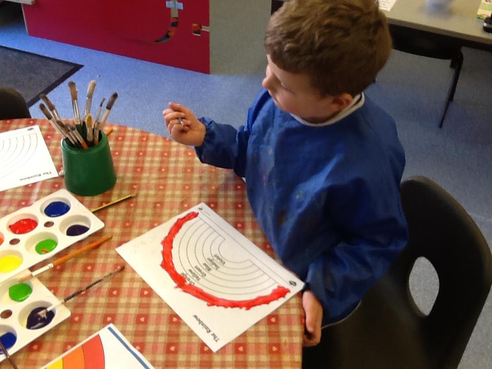 This week the children learnt to recognise and write the l, h and r sounds. For 'r' the children had fun painting rainbows and colouring robots.