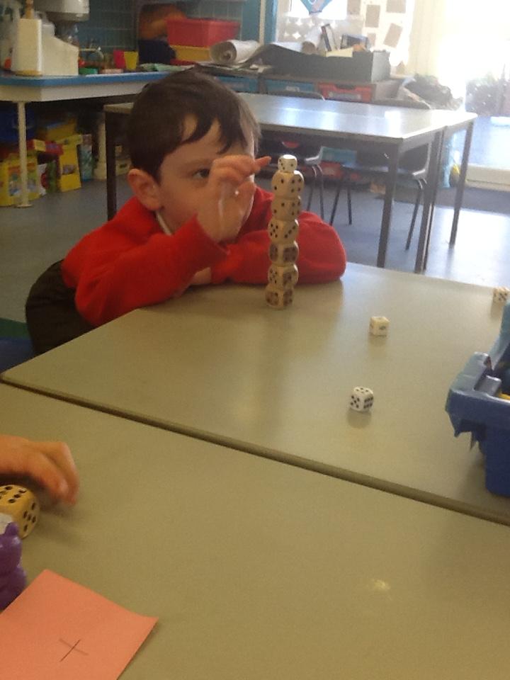 In Maths, The children have been learning to subitise numbers to 5 without counting the objects. E.G. .. ... ... .. .... .