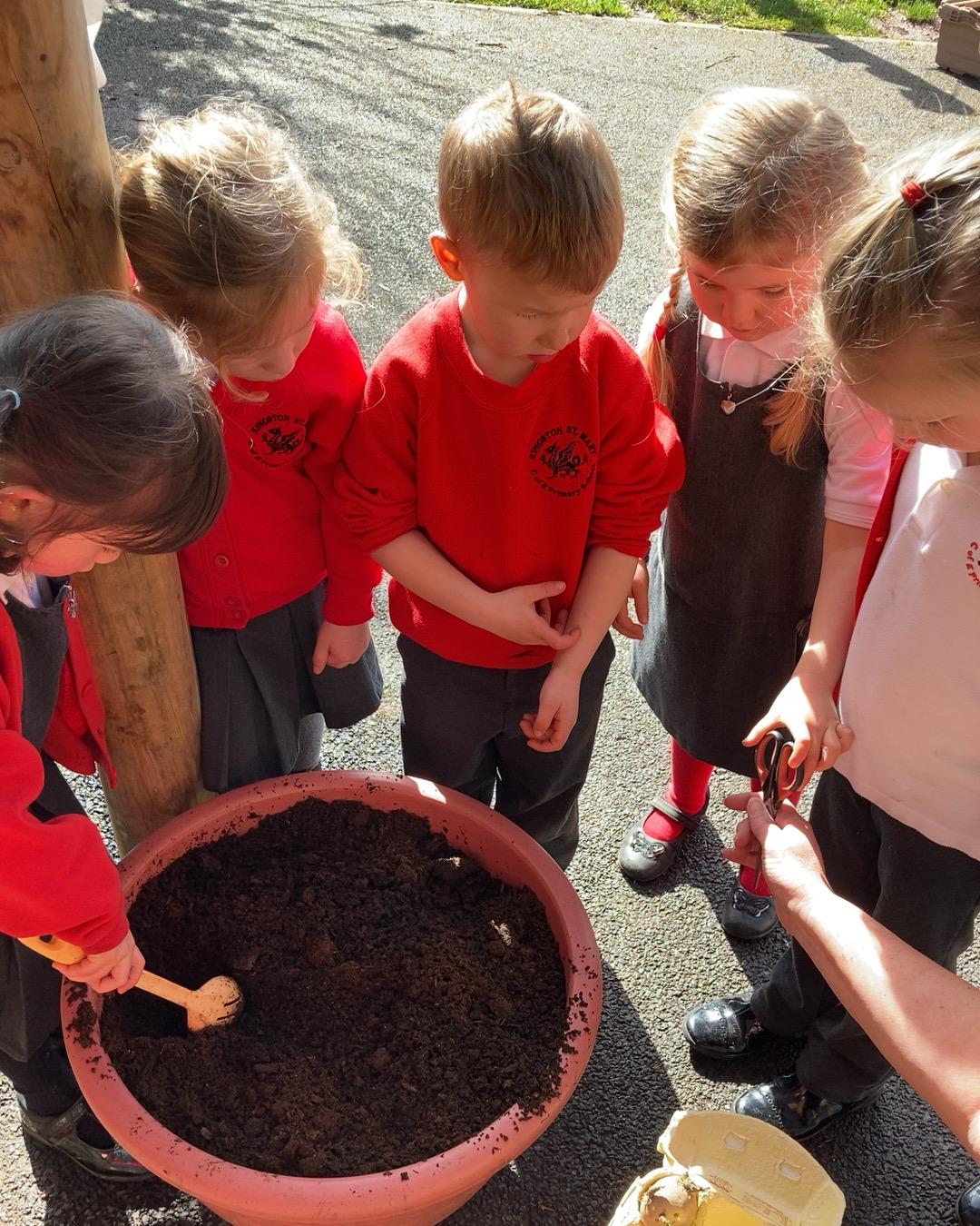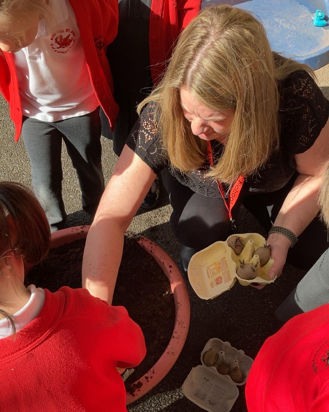 This afternoon we have been planting potatoes in our classroom. The two varieties we planted were Casablanca and Shannon. We are going to track the progress of our potato plants.