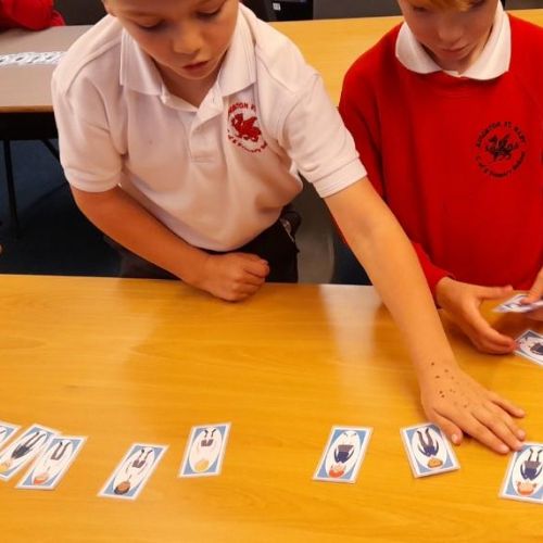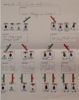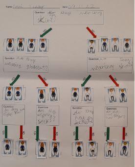 First, we played a 'Guess Who?' game with our partners to try to guess which person they had chosen. We used lots of different questions but our challenge was to find the 'perfect' question each time to eliminate half the people on each turn.