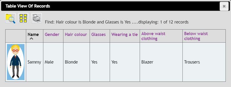 Then, we used a branching database to find the names of each person. We could only answer Yes or No to each of the questions.