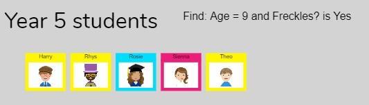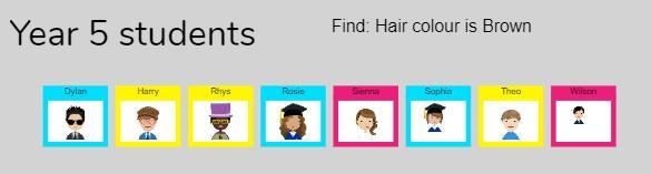 We created a database about Year 5 pupils and added ourselves as records. We explored the database to see how data could be arranged, sorted and grouped. Then we searched the database to find answers to specific questions, such as: How many children wear glasses?; Which children have blonde hair?; Who has blue eyes & wears glasses?; etc. Here is some of the information we discovered: