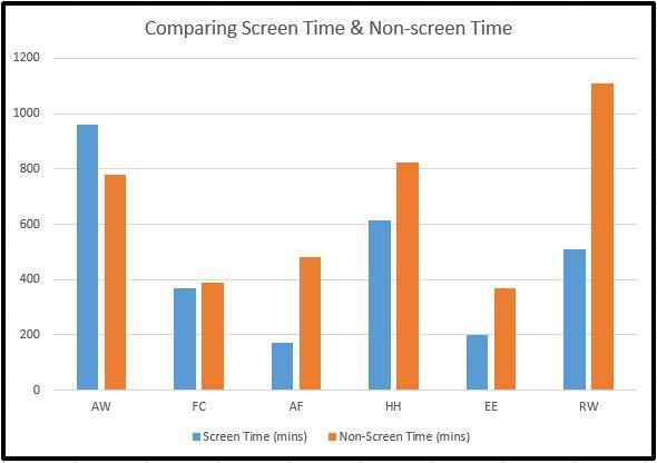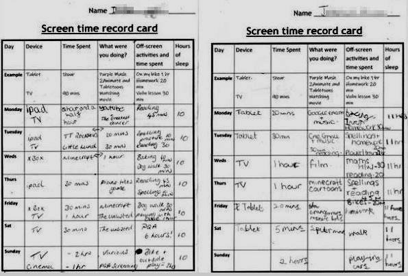 After keeping an activity diary for a week (like the examples below), we talked about the importance of balancing screen time with other activities, as part of a healthy lifestyle.